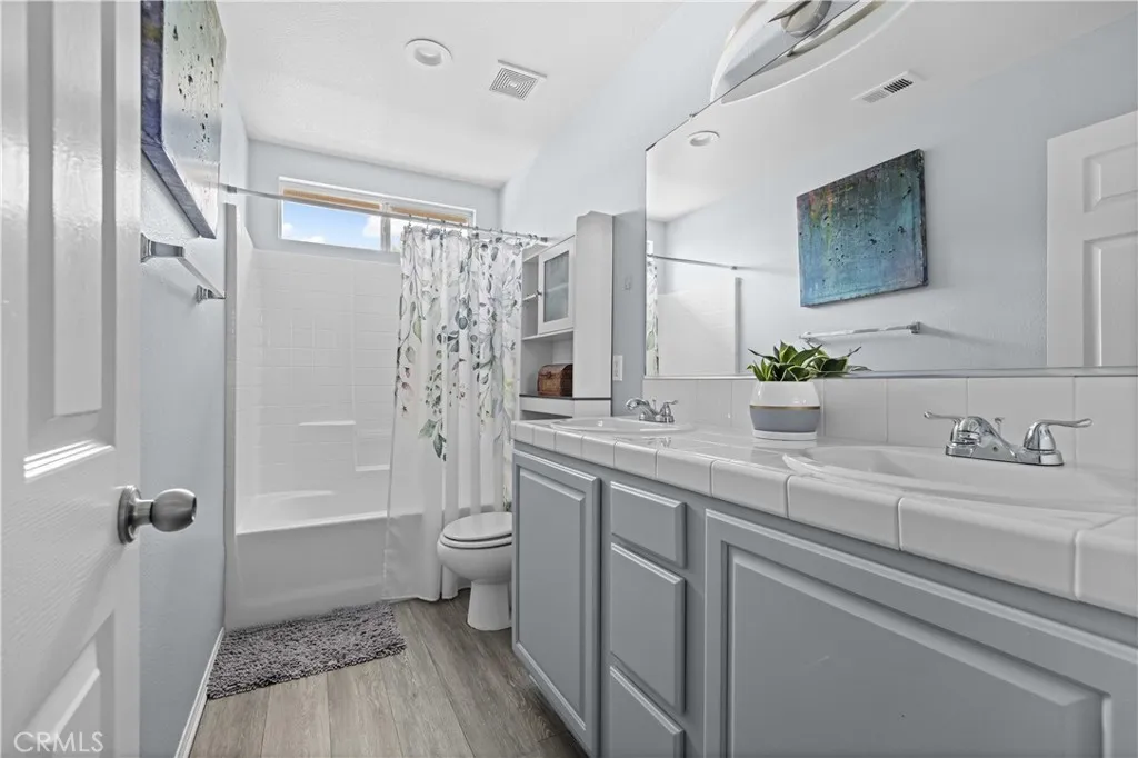 Located on a quiet cul-de-sac in the highly desirable Hasley Hills community, this beautifully maintained four bedroom, two and a half bath home offers a functional layout with the light, open feel buyers want. The living and dining areas flow naturally into the family room, creating an inviting space for everyday living and entertaining. The remodeled kitchen features white cabinetry, granite countertops, a full tile backsplash, stainless steel appliances, a center island, and pendant lighting that gives the space a clean, modern look. Wood-like floors extend throughout the first level, and a convenient powder room is located downstairs for guests. Upstairs, the primary suite offers great space with a walk-in closet and a private bath. All bedrooms are located on the second level, and the fourth bedroom, currently without a closet, works perfectly as an office, loft, playroom, or guest room. The home also includes newer carpet upstairs, plantation shutters, recessed lighting, and an indoor laundry room. The backyard feels private and peaceful with mature trees, lush landscaping, a covered patio, an above-ground spa, and your own avocado, fig, and black cherry trees. It is the perfect setting for relaxing or entertaining friends and family. With no Mello Roos, award-winning schools, and close proximity to shopping, restaurants, parks, and freeway access, this home delivers charm, comfort, and value in one of Castaics most popular neighborhoods.