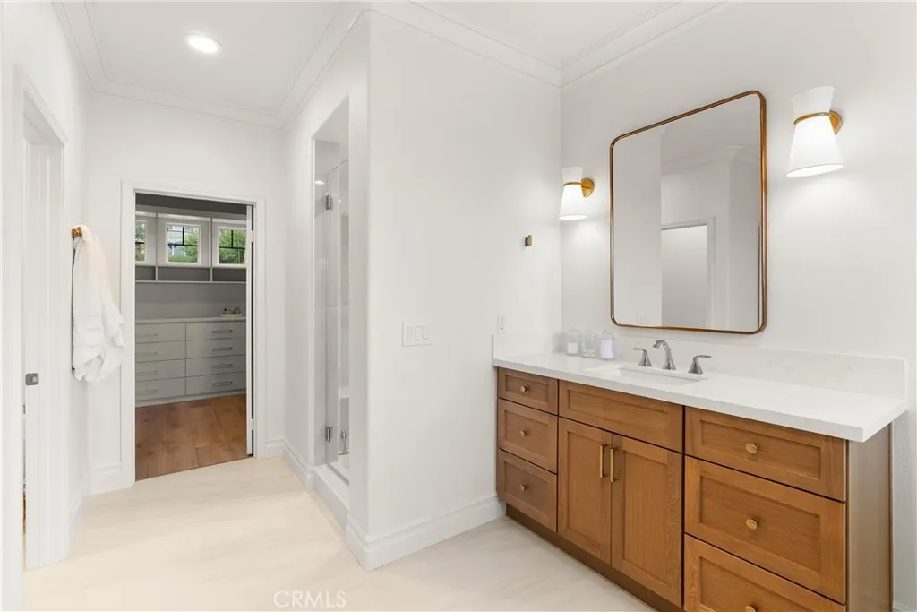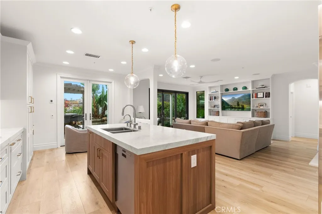 Nestled within the exclusive gated enclave of Reserve West, this remarkable Craftsman-style residence captures ocean views while blending modern luxury with timeless elegance. Perfectly positioned on a serene, single-loaded street, the home makes a striking first impression with refined finishes and expansive La Cantina retractable doors that open effortlessly to create the ultimate indoor-outdoor lifestyle.The gourmet kitchen is beautifully designed with custom cabinetry, striking Taj Mahal quartzite countertops, and a marble mosaic backsplash. Premium Viking appliances, including a built-in refrigerator, and a professional-grade cooktop that provides both everyday convenience and an elevated culinary experience. The versatile floor plan offers five bedrooms, with two conveniently located on the main level. The primary suite captures peaceful hillside and ocean views, both from within and from its private balcony retreat. The newly reimagined, spa-inspired bath exudes sophistication with dual vanities topped in quartz, designer lighting, custom mirrors, a freestanding tub, and elegant tile flooring. A sleek glass-enclosed shower with new tile and fixtures enhances the space, while the expansive walk-in closet with a custom California Closet system completes this luxurious retreat. Refined upgrades extend throughout the home, including plantation shutters, crown molding, custom baseboards, updated ceiling fans, a refined staircase, and extensive built-ins. The expanded laundry room features abundant cabinetry and countertops, while additional bathrooms have been remodeled w