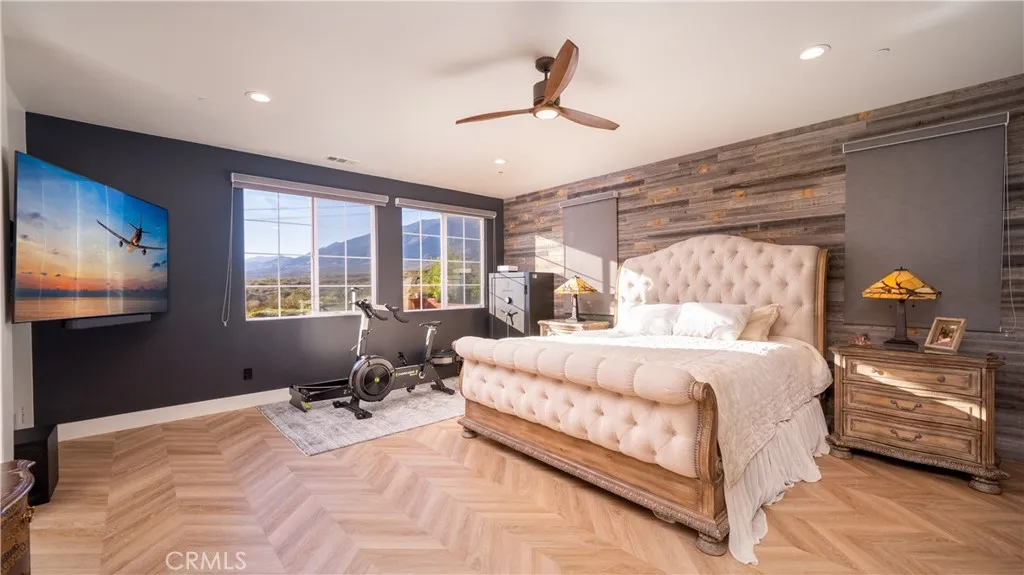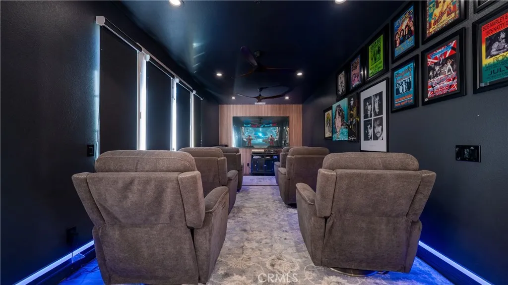 Stunning 3-Car Tandem Garage Home with Breathtaking City Lights View & Designer Upgrades Throughout! Modern luxury meets thoughtful design. Step inside to a versatile den/office space featuring a ceiling fan & elegant French doors that lead to a charming private courtyard. Relax beside the tranquil water fountain under a stylish pergola, surrounded by thoughtfully curated greenery. The home is illuminated throughout with energy-efficient LED lighting, enhancing every space with a sleek, contemporary feel. The formal dining room has been transformed into a state-of-the-art home theatre, complete with decorative walls, custom LED lighting, recessed lighting, & dual modern ceiling fansperfect for immersive movie nights. The gourmet kitchen is a chefs dream, featuring an expansive layout w/quartz countertops, custom tile backsplash, undermount LED lighting, gold-plated hardware, large Kohler farm-style sink, THOR professional 6-burner range with convection oven, pot filler, powerful pull-out range hood, a butlers pantry, and a walk-in pantry for all your culinary needs. The adjacent eating area is ideal for casual dining and entertaining. Downstairs, a designer powder room impresses with black honeycomb tile flooring, LED-lit mirror, high-end bidet, and striking modern wall coverings. Upstairs, enjoy upgraded luxury vinyl plank flooring, plush carpeted stairway w/premium padding, and a large loft area that opens to a balcony with unobstructed city lights views. Retreat to the spacious primary suite with double door entry, custom window treatments, modern wall coverings, and a c