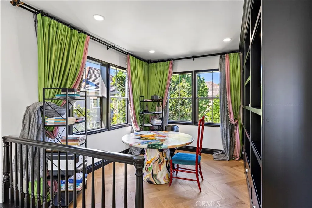 Welcome to this stunning, fully remodeled residence in the prestigious St. Michele gated community, perfectly situated at the end of a peaceful cul-de-sac. Every detail of this detached home has been thoughtfully upgraded, setting it apart from any other property in the neighborhood. The home features 3 spacious bedrooms, plus an open-concept office on the first floor that can easily be converted into a 4th bedroom, along with an additional loft upstairs offering flexible use as a family room, study, or play area. The redesigned kitchen has been opened up to create a seamless, modern flow, complete with granite countertops, stainless steel sink, Miele dishwasher, and gas cooktopideal for the home chef. The two-story vaulted living room is enhanced by custom imported draperies and motorized shades, filling the home with natural light and warmth. Throughout the main level, youll find brand-new luxury vinyl plank flooring, while upstairs is adorned with plush new carpet. Designer upgrades include plantation shutters, custom closets, wainscoting, Nest thermostat, 5-inch baseboards, and a garage with epoxy flooring and overhead storage. The primary suite serves as a peaceful retreat, featuring a tray ceiling, double-door entry, in-wall TV wiring, and a spa-like ensuite bathroom with soaking tub, dual vanities, and a walk-in closet with built-ins. Step outside to a rare oversized backyardone of the largest in the communitywith lush landscaping and a built-in BBQ island, perfect for entertaining family and friends. The deep front yard and wide driveway at the cul-de-sac offer addi
