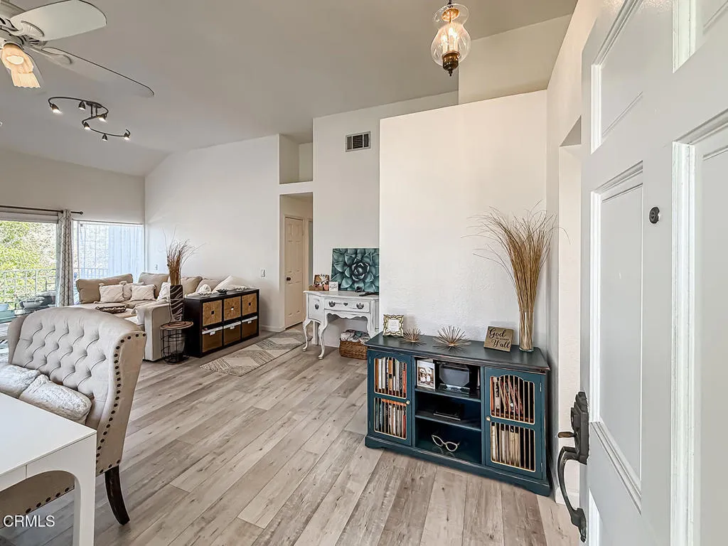 Located in a quiet, gated enclave, this beautifully remodeled 2-bedroom, 2-bath end unit offers rare privacy with no neighbors on one side and elevated views from its second-floor perch. The private entry is a simple walk-up with no one above you, no one beside you.Inside, an open-concept layout is bright and inviting, with natural light flowing across upgraded wood-look flooring. The kitchen is both functional and stylish, featuring quartzite countertops, stainless steel appliances, and soft-close custom cabinetry with pull-out shelving.Both Bathrooms have been thoughtfully updated with clean, contemporary finishes, spa-style showers, and modern vanities. The spacious Bedrooms are designed for rest and relaxation, with generous closet space and a quiet setting ideal for a good night's sleep. The Living Area features a cozy fireplace and opens to a private terrace perfect for unwinding with a book or hosting friends on a mild Camarillo eveningAdditional upgrades include plantation shutters, a newer HVAC system, and a detached garage with a brand-new door.Community amenities include a sparkling pool, spa, fitness center, clubhouse, and walking trails all tucked within a peaceful, landscaped setting. With golf, shopping, dining, and the coast just minutes away, this home delivers convenience, comfort, and lifestyle in one complete package.