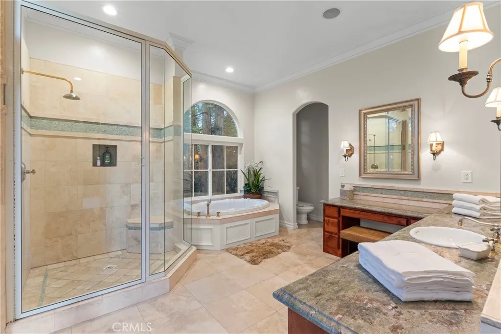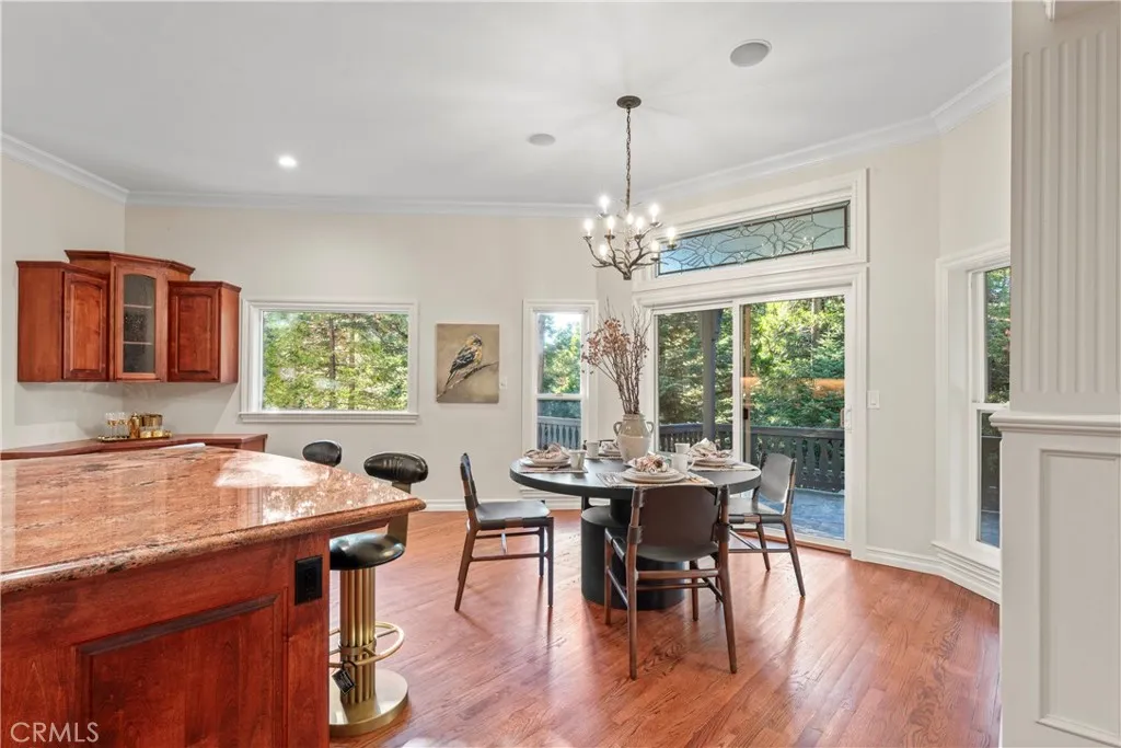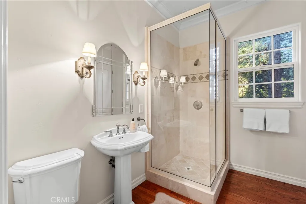 Centered on a private 1.05 acre parcel in the prestigious gated community of Cedar Ridge Estates, 29198 Pigeon Hawk offers its residents maximum tranquility within a grove of soaring Cedar trees. Full lake rights to private Lake Arrowhead and custom built in 2002, this manor on the hill boasts 4,102 sq ft, features 4 bedrooms/5 baths. A dramatic grand entrance showcases soaring cathedral ceilings and a flowing main staircase. High quality craftsmanship shown through elegant crown molding, solid core doors, oversized baseboards and solid Oak wood flooring. A formal dining room attaches to a spacious kitchen complete with granite slab counters, a food prepping island, breakfast bar top island, Thermador double oven, and stainless steel appliances. A spacious main living room features a soothing wood burning fireplace incased with rustic dry stack stone masonry. A bathroom attached to an office(4th bedroom), complete the main living level. Two sliding doors access the impressive, covered slate entertainers patio off the kitchen & living room. Host large family gatherings via two terraced Trex decking areas complete with fire pit and private Gazebo. Upstairs offers the luxurious primary bedroom en suite with two spacious independent double bathrooms, gas fireplace, and private deck overlooking a the grounds. Two more en suite guest bedrooms and a open beamed game room w/ attached childrens play room perfect the upper level. Owners will value an oversized 3 car garage and laundry room which enter directly into the main living level. Professionally decorated and painted inside a
