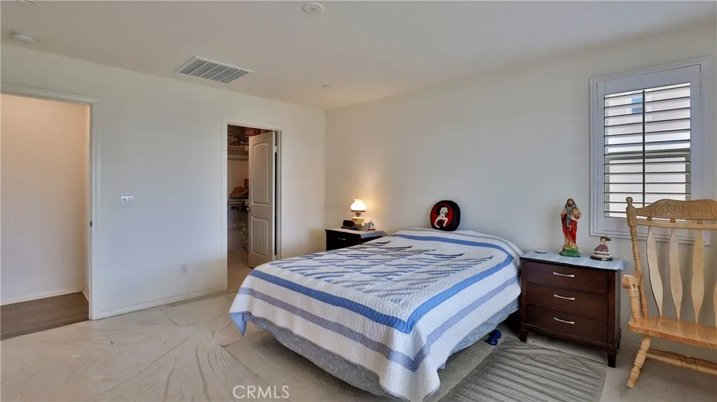 Welcome to this stunning single-story home located in the desirable Shadow Rock Community in the beautiful city of Jurupa Valley. This open-concept floor plan features 3 spacious bedrooms and 2 bathrooms, perfect for comfortable family living. The modern kitchen boasts elegant granite countertops and opens seamlessly to the living and dining areas, ideal for entertaining. Laminate flooring runs throughout the main living spaces, with plush carpet in the bedrooms for added comfort. The primary suite offers a private retreat with a dual-sink vanity with quartz countertops, and a large walk-in closet. Additional highlights include dual-pane windows, custom shutters, and paid-off solar panels, providing energy efficiency and savings. Enjoy outdoor living under the covered patio overlooking a spacious backyard, perfect for family gatherings or relaxation. The home also features a sprinkler system in both the front and back yards. With no HOA and a prime location, this home is a rare find in todays market!