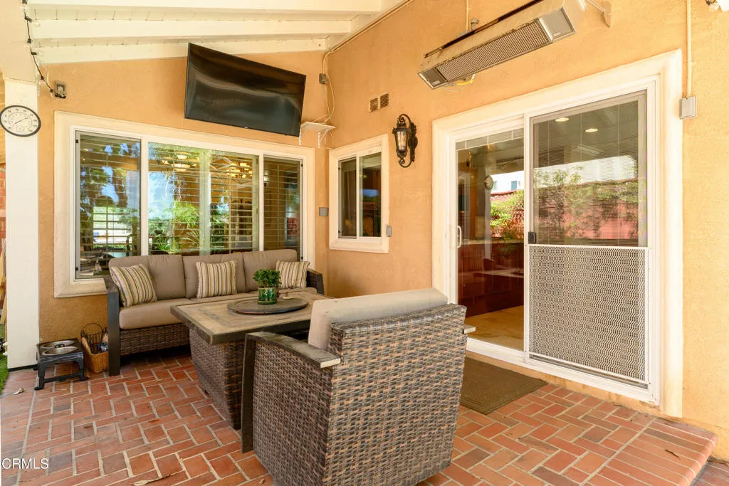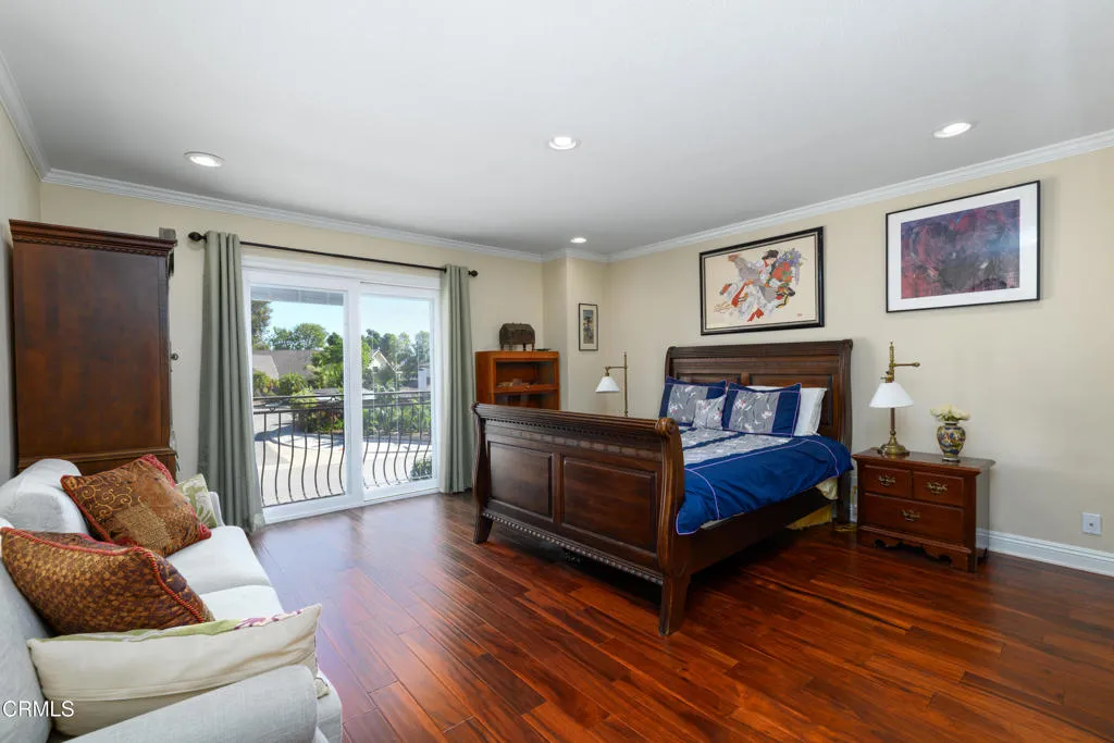 Nestled north of Las Posas in a picture-perfect setting, this fabulous Rancho Tomas residence is just steps from the Charter Oak walking trail -- lined with eucalyptus trees leading to a sweet community park. From the moment you arrive, you'll feel the home's sense of refinement. Beautiful stonework, arches, and a charming fountain frame the entry, while a stunning wrought-iron arched front door welcomes you inside. Step into soaring ceilings and sun-filled living spaces designed for both comfort and style. Two inviting stone fireplaces anchor the formal living and family rooms, complemented by travertine tile and rich hardwood flooring that flow seamlessly throughout.Complete with GE Monogram stainless-steel appliances - double ovens, five-burner gas cooktop; a Bosch dishwasher, pull-outs on every lower cabinet, under-cabinet lighting and a wine storage area. Enjoy casual meals in the eat-in area or host elegant dinners in the formal dining room enhanced by crown moulding and plantation shutters, which are carried through the home.The flexible floorplan includes a double-door office or downstairs bedroom with a walk-in closet and a full bath nearby -- ideal for guests or multi-generational living. Upstairs, the expansive primary suite offers a peaceful retreat with a generous walk-in closet, double copper sinks, and a luxurious walk-in shower. Two additional bedrooms each feature abundant space with walk-in closets and hillside views! The guest bath offers double sinks and a separate shower over tub; across the hall is a perfectly placed linen/storage closet - also a walk-