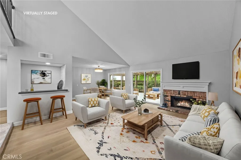 Welcome to this beautifully updated home in Anaheim Hills, nestled near the end of a quiet cul-de-sac for extra privacy. Step inside and youll find a bright open layout with vaulted ceilings, recessed lighting, and fresh neutral paint that creates a warm, modern feel. The spacious living room features a cozy fireplace, perfect for relaxing or gathering with friends. A few steps away, the dining area opens to the updated kitchen with quartz counters, a deep farmhouse sink, new cabinets, and a built-in cooktop, oven, and microwave. Two sliding glass doors lead to a peaceful backyard surrounded by trees and a gentle slope, offering a sense of calm and seclusion. Downstairs has new hardwood floors that add both beauty and durability. Upstairs, youll find new carpet, a bright primary suite with an updated private bath, and two comfortable secondary bedrooms. Every bathroom has been thoughtfully remodeled with modern fixtures and finishes. Extra details include a stylish wet bar with sink and built-in wine cooler, an indoor laundry room, central heating and air conditioning, and a two-car attached garage for easy access and storage. Located in a well-maintained community, residents enjoy access to a sparkling pool and tennis court. The neighborhood is close to top schools, shopping, dining, golf courses, hiking trails, and freeway accesseverything you need just minutes away. This move-in-ready home offers a blend of comfort, style, and location thats hard to find. Come see why homes in Anaheim Hills are so sought afterschedule your private showing today.