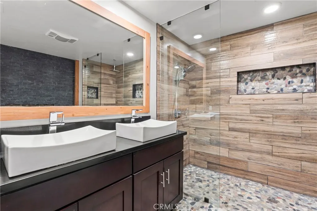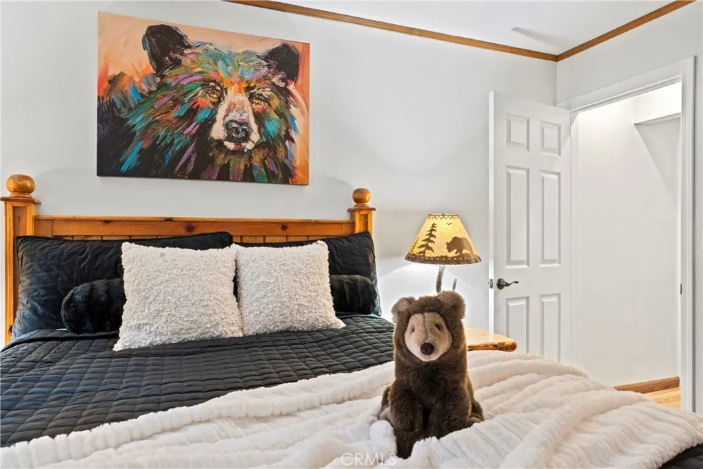 Phenomenal Prow Style home located directly across from the forest and trails, with easy access to the golf course just down the street. This property also includes Lake Rights, allowing full use of beautiful Lake Arrowhead. Over $300,000 in upgrades, including a recently remodeled kitchen with high-end professional-style appliances, slab quartz countertops, and a garden bay window overlooking mature evergreens and oaks on your own land. The home features 4 bedrooms, 3 bathrooms, an office, and a den/family room with a second fireplaceideal for gatherings or quiet relaxation. The main-level Great Room highlights natural wood open-beamed ceilings and a classic retro rock fireplace that adds warmth and character. Additional updates include remodeled bathrooms, new interior and exterior paint, newer lower patio/deck, fenced yard, upgraded flooring, newer forced air system, "Leaf Guard Style" rain gutters and system improvements. Both the new Flagship whole house water filtration system and an additional Revrse Osmosis system at the sink ensure the best of the best for your water supply. Both guys and gals can relax in the "She-Shed" while the guys have their own storage shed, too. Located in a peaceful, forested setting with nearby recreation and golf access, this home offers both comfort and convenience in one of Lake Arrowheads most desirable areas.