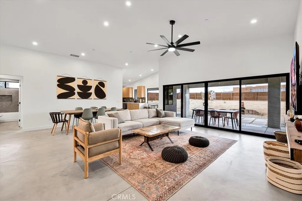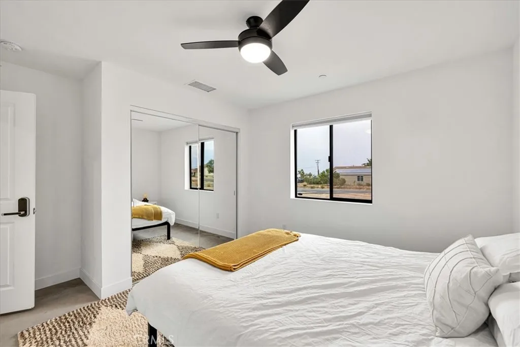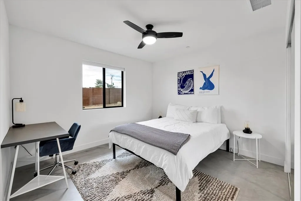 Stunning 4-Bedroom, 2-Bath Home on the Mesa in Yucca Valley! Set on a desirable corner lot with over half an acre of land, this 2022-built home offers the perfect blend of modern comfort and desert charm. Featuring 1,902 sq. ft. of open living space, soaring ceilings, and polished concrete floors throughout, this property is designed with both style and functionality in mind. The heart of the home is the expansive kitchen, complete with quartz countertops, stainless steel appliances, and a generous island that flows seamlessly into the spacious living roomideal for hosting family and friends. Each of the four bedrooms offers plenty of room to make your own, while the primary suite is a true retreat with high ceilings, double vanity sinks, a huge walk-in closet, and a spa-like bathroom. Additional highlights include central heating and A/C, an indoor laundry room, and a covered back patioperfect for enjoying peaceful mornings or relaxing evenings under the desert sky. This move-in ready home checks every box. Dont miss your chance to own a modern desert oasis in beautiful Yucca Valley. Schedule your showing today!
