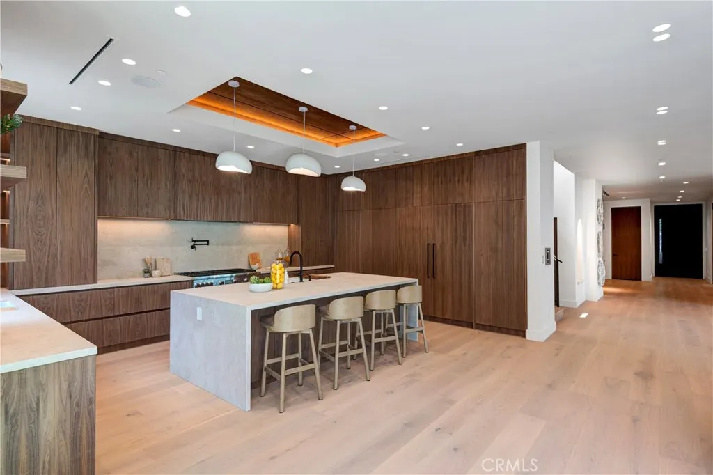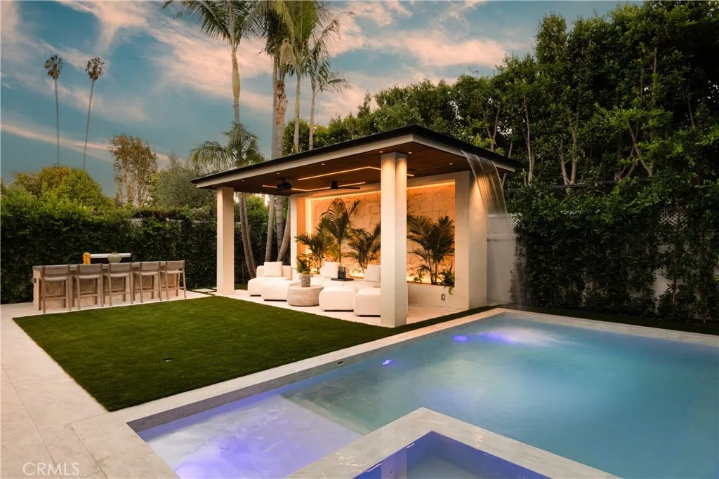 Experience the pinnacle of modern living in this newly constructed organic modern showpiece, where sophistication meets comfort at every turn. Thoughtfully curated with the finest finishes and innovative design elements, this residence offers a seamless blend of elegance, functionality, and style. The open-concept floor plan flows effortlessly from the dining room to the family room, where expansive sliding glass doors open to the backyard. Bathed in natural light, the interiors blur the line between indoor and outdoor living. The gourmet chefs kitchen is a culinary dream, featuring top-of-the-line appliances, an oversized center island with breakfast bar seating, and a walk-in pantry. A cozy yet stylish theater room provides the perfect setting for family movie nights or entertaining guests. The luxurious primary suite serves as a private retreat, complete with a fireplace, wet bar, custom walk-in closet, and a spacious balcony overlooking serene views. The spa-inspired bathroom offers a soaking tub, oversized walk-in shower, dual vanities, and private balcony access for peaceful morning moments. Step outside to a resort-style backyard oasis showcasing a covered cabana with a waterfall feature, pool and spa, built-in BBQ with bar seating, and an outdoor motorized movie screen with projectorperfect for unforgettable gatherings or relaxing under the stars. Additional highlights include a Control4 smart home system, surround sound throughout, a security camera system, and a prime location near Westfield Fashion Square, Ventura Blvds premier dining and shopping, and top-rated