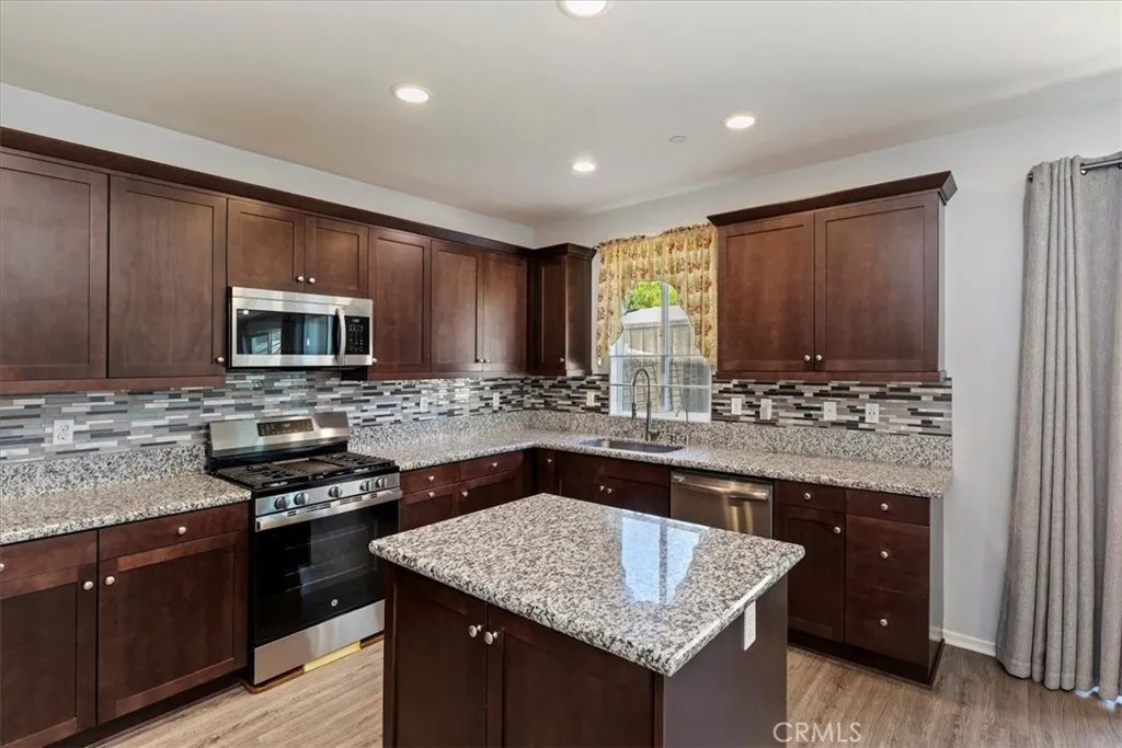 Welcome Home! 24228 Lilac Ln is a beautifully maintained 3-bedroom, 2.5-bath home offering 2,064 sq ft of comfortable living in the sought-after Westridge gated community of Lake Elsinore. The open layout features a bright living area, kitchen with granite countertops, stainless-steel appliances, and a large center island, along with upgraded flooring throughout the main level. Upstairs includes a flexible loft, a spacious primary suite with walk-in closet and dual sinks, plus a convenient laundry room. Energy-efficient upgrades include owned solar panels, a tankless water heater, and an electric-vehicle charger for modern, eco-friendly living. The private backyard with concrete patio and pergola is ideal for family gatherings or quiet evenings outdoors. Westridge residents enjoy a community pool, spa, playground, and walking paths, all close to shopping, schools, and freeway access. A warm, welcoming home that blends comfort, efficiency, and Southern California lifestyle beautifully.