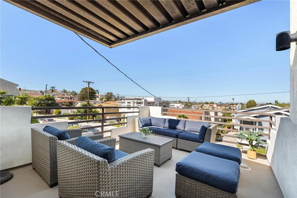 Located in one of Redondo Beachs most desirable neighborhoods, this front-unit contemporary townhome offers abundant natural light, thoughtful design, and exceptional indoor-outdoor living. Upon entry, youre welcomed into a bright foyer, where a sunken formal living room greets you with vaulted ceilings and an abundance of natural light. Currently utilized as a home office, this space offers the perfect setting for a formal sitting area or creative workspace. The first level hosts three generously sized bedrooms and a remodeled full bathroom with dual sinks and a glass-enclosed shower and tub. This level also provides direct access to the three-car attached garage, offering ample storage, as well as a laundry room with built-in cabinetry for added functionality. Ascending to the upper level, youre immediately met with vaulted ceilings, abundant sunlight, and a spacious open-concept layout ideal for everyday living and entertaining. The living room with fireplace flows seamlessly onto a large front terrace, extending the living space outdoors, overlooking expansive mountain views. The updated kitchen showcases quartz countertops, a center island with waterfall edge, stainless steel appliances, and ample cabinetry. Adjacent to the kitchen, a second outdoor terrace offers the perfect spot for a BBQ or casual dining with its convenient proximity to the kitchen. A powder room on this level serves guests comfortably. Also found on the upper level, the primary suite is positioned for ultimate privacy. Oversized in scale, it features a fireplace, dual walk-in closets, and a private