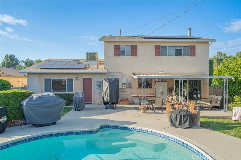 Beautiful Saugus Pool Home with Bonus Room and Solar Welcome to this stunning two-story home located in a highly desirable Saugus neighborhood. This well-maintained property features 3 bedrooms, 2 bathrooms, and a versatile bonus room that can be used as a playroom, home gym, or office. The home showcases manicured landscaping and excellent curb appeal. Step through the double-door entry into a bright and inviting living space with beautiful flooring that flows through the living room, dining area, and kitchen. The downstairs bathroom has been tastefully updated. Enjoy easy access to the backyard from the bonus room, where youll find a sparkling poolperfect for entertaining or relaxing. Additional highlights include leased solar panels for energy efficiency and cost savings. Conveniently located minutes from Central Park, award-winning schools, and shopping centers, this home offers the perfect blend of comfort, style, and convenience.