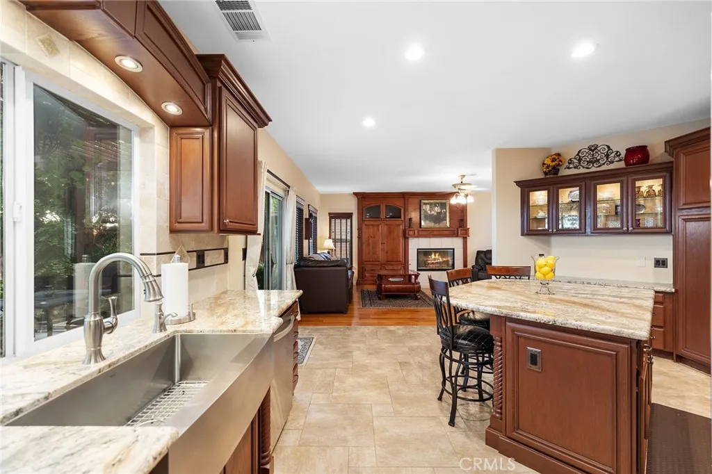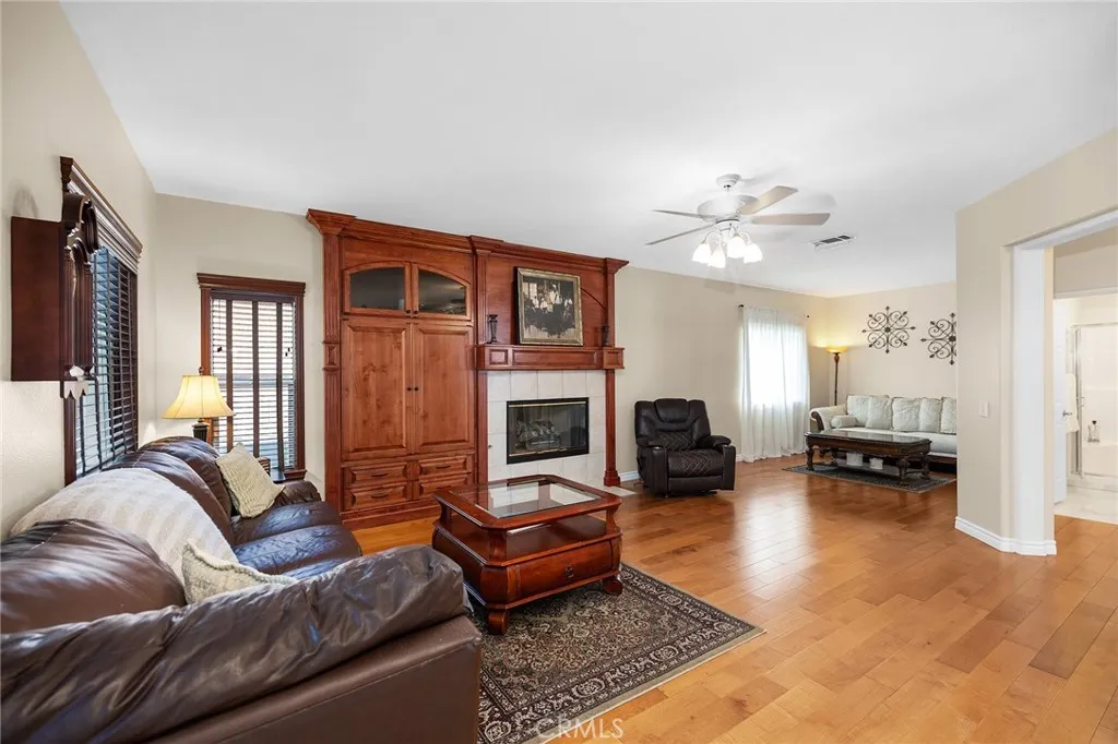 Welcome to this beautifully maintained 4-bedroom, 4-bathroom home with a 3-car garage, tucked away at the end of a quiet cul-de-sac in one of Murrietas most peaceful neighborhoods. Lovingly cared for by the original owners, this home blends timeless craftsmanship with thoughtful updates and family-focused comfort. The open living room showcases a stunning two-story Venetian plaster accent wall, tall windows framed with custom woodwork, and a breathtaking $40,000 custom-built second-floor library visible from below. The spacious kitchen features custom cabinetry, granite counters, stainless steel appliances, a Brizo faucet, pull-out spice racks on both sides of the oven and microwave, pull-out storage on both sides of the kitchen sink, a double trash pullout, under-cabinet lighting, and a lighted glass display cabinet. The dining room offers a coffered ceiling and crystal chandelier, while the expansive family room provides flexible space for entertaining or relaxing. Brand new hardwood flooring was installed downstairs in 2023, adding warmth and elegance throughout the main level. The main floor includes a full bathroom and an area that could easily be converted into a bedroom, ideal for guests or multi-generational living. Upstairs, the impressive primary suite spans the entire width of the home, offering space for a sitting area, gym, or office, and features a generous ensuite with dual sinks, a large soaking tub, and a spacious walk-in closet. The large bonus room includes access to a private balcony perfect for morning coffee or evening sunsets, while the third floor se