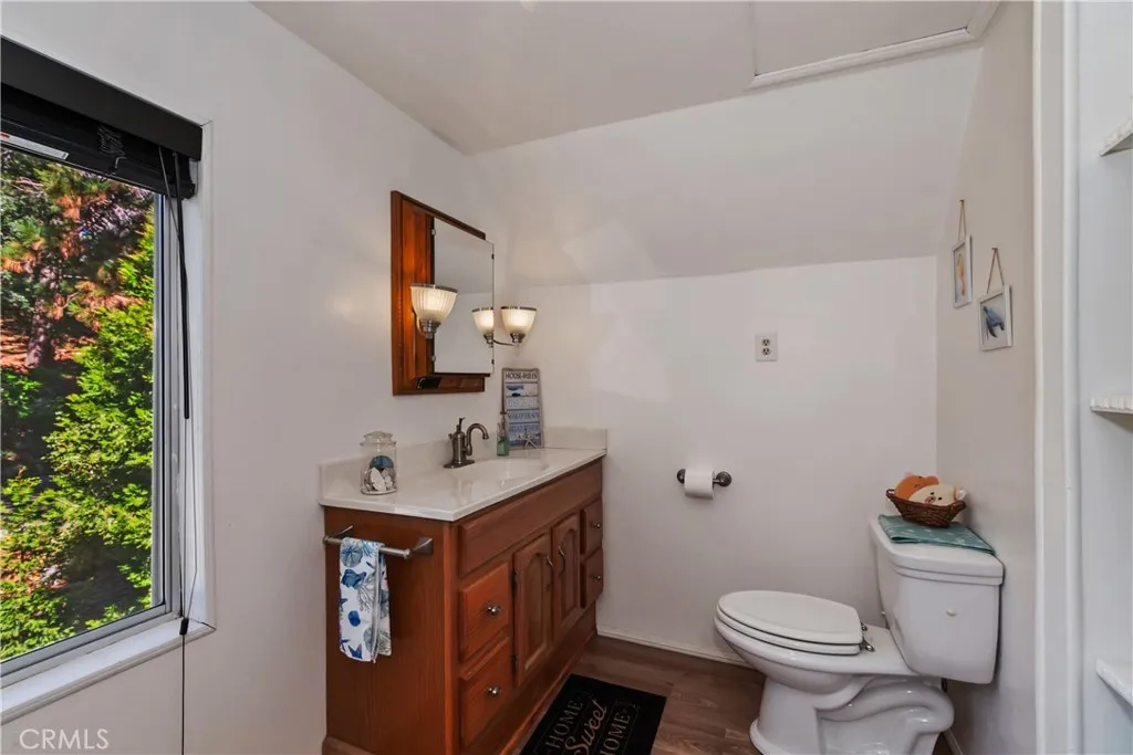 Take a look at this beautiful vintage cabin from 1935 with so many thoughtful upgrades! It sits on a corner lot and offers easy entry with only 2 small steps. Two bedrooms conveniently located on the main level, and the master bedroom upstairs is complete with a full bathroom and cozy sitting area. Breathtaking custom split granite wood burning fireplace with gas starter and arrowhead features demands to be the focal point of this room! Some of the many upgrades include electrical, water heater, plumbing and heating, as well as a Generac Generator for emergencies and a Lorax Ultra Surveillance system for peace of mind. Beautifully updated kitchen, with newer appliances. Rustic T&G wood paneling enhances the cabin's charm. Lower level has an expansive open workshop/cellar type area, offering ample space and numerous possibilities. Outdoors you can get your fill of nature's beauty on this wrap-around deck or out on the gentle sloping yard. Easy access drive through style driveway with plenty of off-street parking. Additionally, the possibility of RV parking around the side, there's even a big wood or tool shed! This property is about an hour to Big Bear, and typically under 2 hours from LA, making it a fantastic commuter location. And of course, it is very close to many popular restaurants and shops in oh so popular Sky Forest..... home of LouEddie's Pizza. Minutes to historic Lake Arrowhead Village and the ever popular SkyPark at Santa's Village!