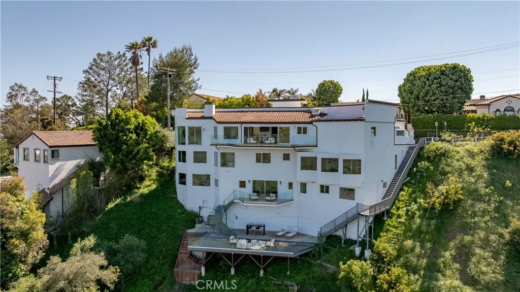 Lowest price per foot in all of BHPO! Seller Financing available. A masterpiece of modern luxury, crafted by acclaimed architect Donald Woolf, spans 6,573 sq ft on a sprawling acre lot. This fully walled and gated estate commands jetliner views of the canyons, rolling hills, and the glittering DTLA skyline. Step through the grand 12-ft pivot door into a world of elegance, where oakwood floors and 14-ft soaring ceilings create a serene ambiance. Expansive Fleetwood doors seamlessly blend indoor/outdoor spaces, inviting natural light to dance across the home. The family room, adorned with a sleek linear fireplace and framed by panoramic scenery. The gourmet kitchen, a true culinary haven, showcases exquisite Italian cabinetry, premium Thermador appliances, and a spacious balcony ideal for al fresco dining. The primary suite is a tranquil sanctuary, thoughtfully appointed with a cozy fireplace sitting area, dramatic floor-to-ceiling windows, and a luxurious collection of walk-in closetsincluding massive his-and-her wardrobes and a dedicated shoe closet tailored for the discerning collector. The en suite bathroom pampers with a dual vanity, rejuvenating steam shower, and a freestanding soaking tub, all complemented by Italian tile and remote-controlled LED lighting. Beyond its elegance, the home boasts massive storage areas, including a game room, 2,000 sq ft of under-house storage, and three additional storage rooms, providing both versatility and convenience. The 4-car garage features custom flooring, combining practical function with sleek design. A state-of-the-art 15-camer