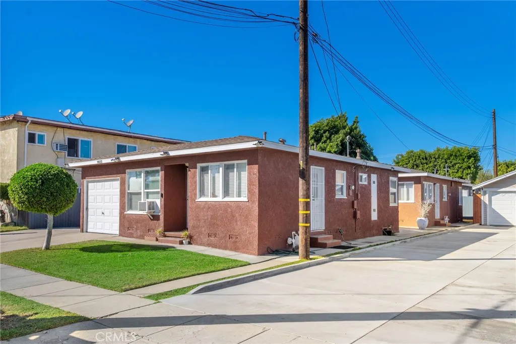 9833 Walnut Street offers a rare opportunity to acquire three detached homes on a single lot in the heart of Bellflower. Situated just blocks from Downtown Bellflower, Bellflower Blvd, and Hollywood Sports Park, the property provides a walkable and convenient location in a strong rental market. The property features a total of 2,142 square feet of living area on a 6,868 square foot lot, with a unit mix of (3) 2-bedroom/1-bath homes, each equipped with a private 1-car garage. All three dwellings have new plumbing and roofs that were replaced approximately three years ago, providing peace of mind and reduced maintenance for the next owner. This property is an ideal opportunity for an owner-user or investor to renovate and capture market rents across the property. At a 3.68% CAP rate and $466,667 per unit, the asset offers both stability and long-term upside. With its central location, multiple income streams, and flexible ownership potential, 9833 Walnut Street stands out as a well-positioned investment opportunity in one of Bellflowers most accessible neighborhoods.