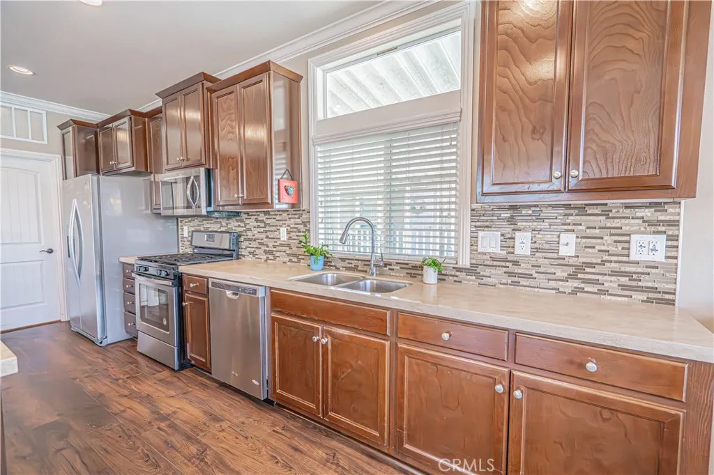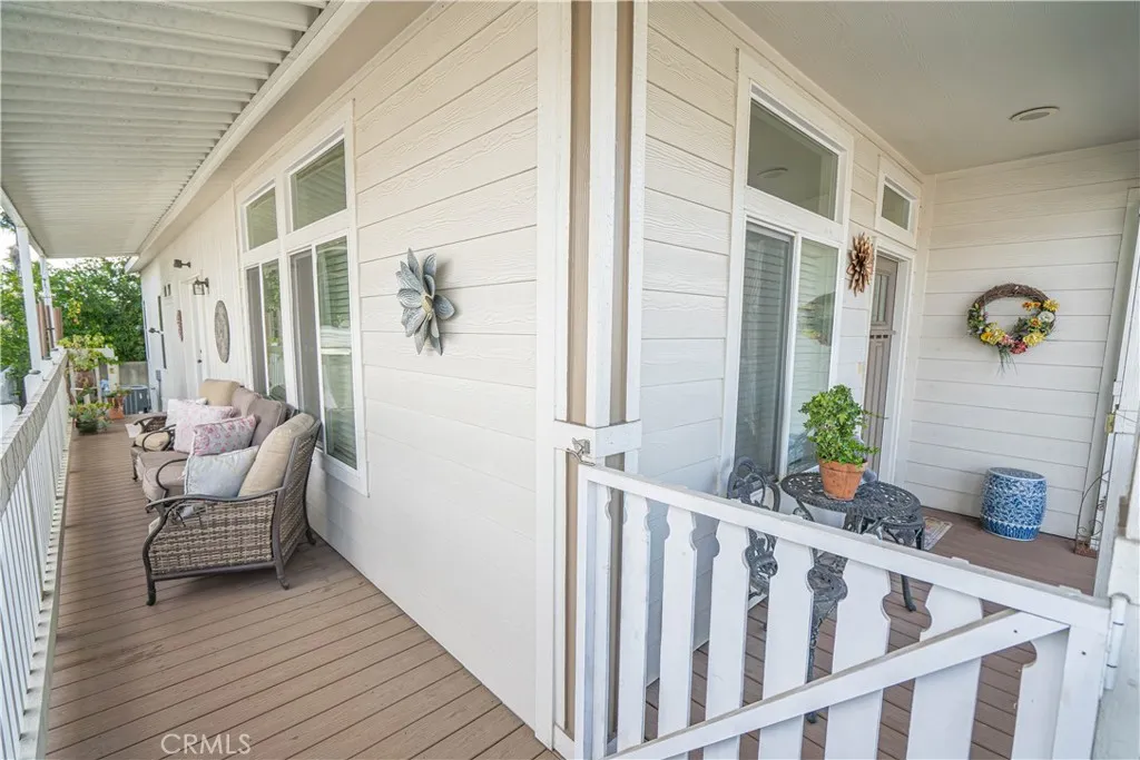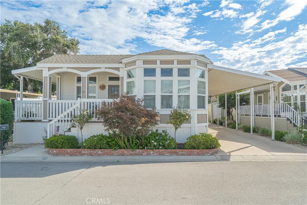 Situated in the desirable gated community of Vista Del Monte in Monrovia, this inviting 55+ home offers comfort, charm, and convenience in a peaceful setting. The spacious wraparound deck is perfect for relaxing outdoors or entertaining guests, while the kitchen features sleek stainless steel appliances that add a touch of modern style and functionality. This home has 2 large bedrooms and a bonus room that can be used as a den, craft room or maybe even a 3rd bedroom. Large windows fill the home with natural light, creating a warm and welcoming atmosphere throughout. Residents enjoy access to a sparkling community pool, soothing spa, and a beautifully maintained clubhouse ideal for social gatherings and events. With water and trash included in the land lease, this home provides ease of living and low-maintenance comfort in a friendly senior community designed for relaxation and connection.