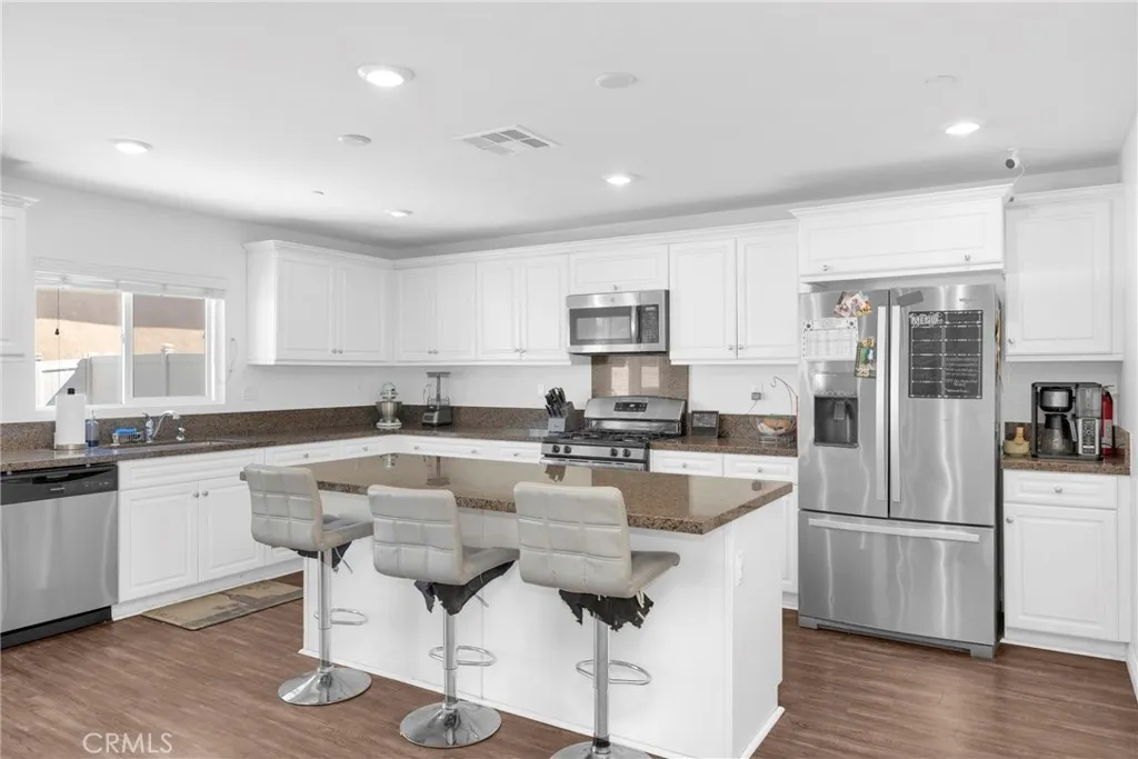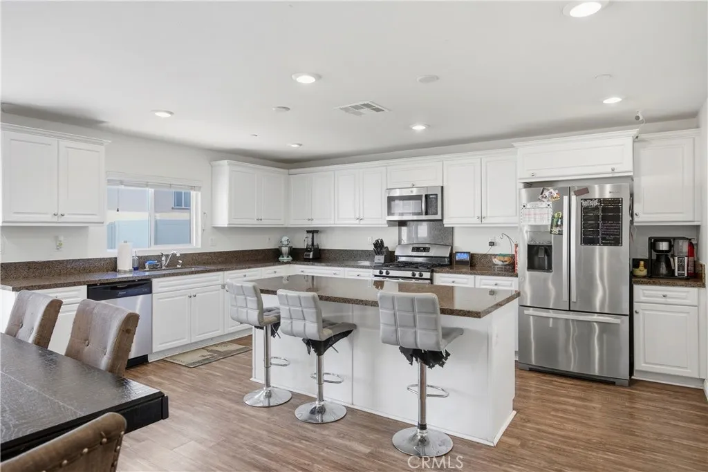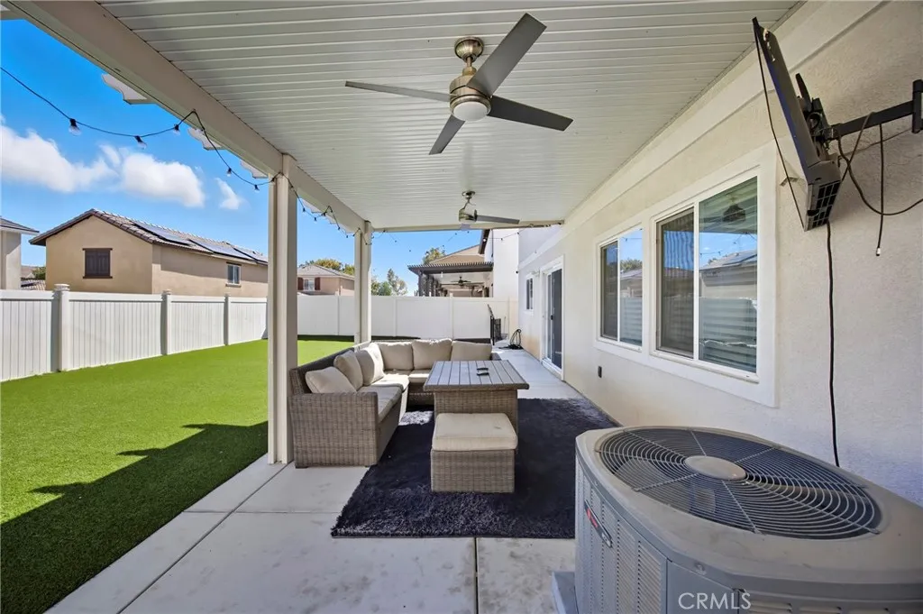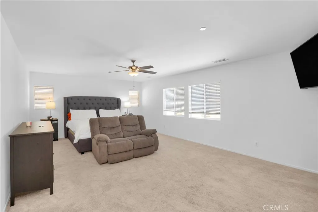 Welcome to Meadow Creek where comfort meets contemporary living. This stunning 4-bedroom, with 1 on the first floor, and 3-bath home is nestled within the highly desirable gated community of Meadow Creek. Designed with an open-concept layout, the spacious living and dining areas flow seamlessly togetherideal for both everyday living and entertaining guests. The modern kitchen features sleek countertops, stainless steel appliances, and plenty of cabinetry for storage. Upstairs, a large loft offers flexible spaceperfect for a home office, playroom, or media area. The primary suite serves as a relaxing retreat with a generous walk-in closet and a spa-inspired ensuite bathroom. Residents enjoy exclusive access to resort-style amenities, including a sparkling pool, spa, clubhouse, BBQ area, playground, and fully equipped fitness centerall within this private gated enclave. Prime Location: Conveniently located near premier shopping, dining, and entertainment, this Meadow Creek home also offers easy access to the 60 Freeway and is within walking distance to Hidden Springs Elementary, Vista Heights Middle, and Canyon Springs High Schoolplus just 12 minutes from UC Riverside. This property also has solar! Experience the perfect blend of style, comfort, and community at Meadow Creek.
