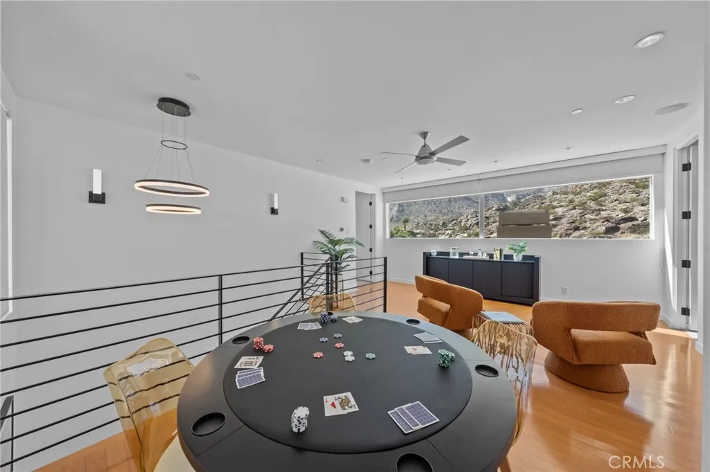New-Century Modern Luxury in Indian Canyons, South Palm Springs. Discover the perfect fusion of mid-century inspiration and modern sophistication in this architectural masterpiece, nestled within the prestigious Indian Canyons neighborhood of South Palm Springs. Set against the dramatic backdrop of the San Jacinto Mountains, this residence captures the essence of desert modernismwhere timeless design meets effortless luxury. Positioned in The 2801, one of South Palm Springs most impressive modern enclaves, this home echoes the architectural language that defines the area while offering enhanced privacy. Spanning 3,339 square feet, the residence showcases 12-foot ceilings, open-concept living, and walls of glass framing panoramic mountain and canyon views. Sunlight floods the interiors, highlighting minimalist finishes, natural textures, and fine materials chosen for both beauty and function. Designed for both relaxation and entertaining, the floor plan features three bedrooms, a bonus room, loft area, and three-and-a-half bathrooms, along with a dedicated family/media room that doubles as an elegant work-from-home retreat. Every space feels intentionalwhether hosting guests, working remotely, or simply enjoying the tranquility of the desert surroundings. Outside, a resort-inspired saline pool anchors a private backyard oasis. Framed by manicured desert landscaping and open mountain vistas, the outdoor living areas invite sun-drenched afternoons, sunset gatherings, and evening entertaining under starlit skies. Additional highlights include paid solar, low HOA fees, and fee-s