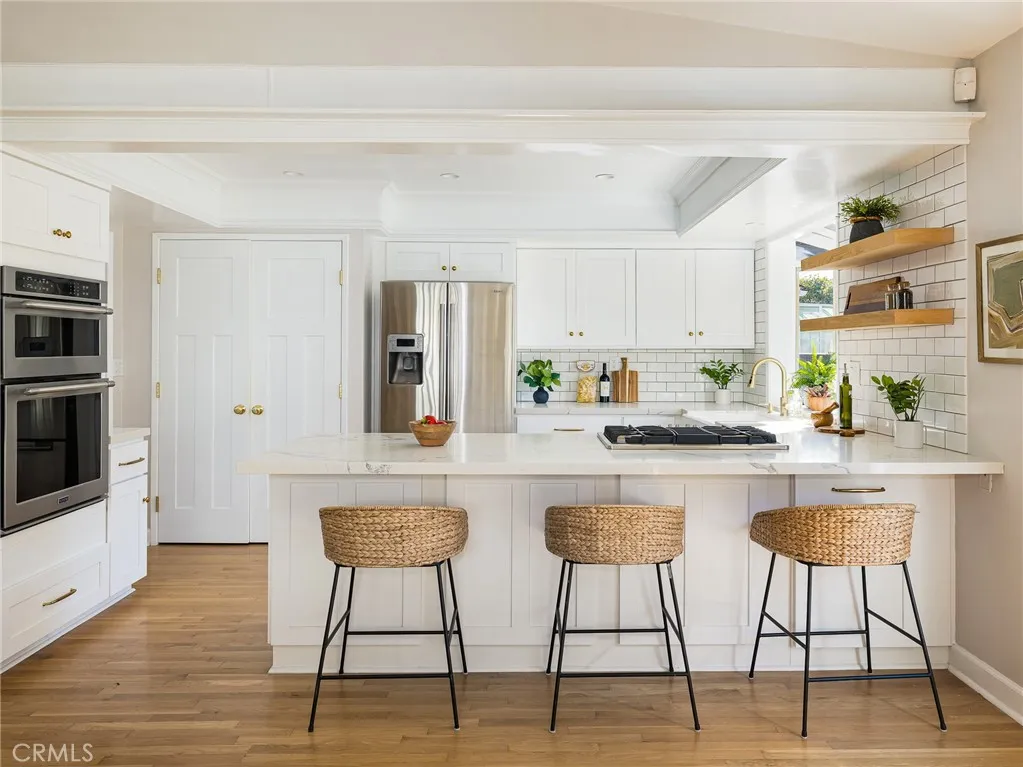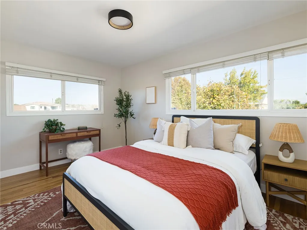 Welcome to this beautifully updated home where contemporary design seamlessly blends with everyday comfort. Flooded with natural light, this home features five spacious bedrooms and three stylishly renovated bathrooms. The inviting living room, complete with elegant crown moulding and a cozy fireplace, sets the perfect tone for both relaxing and entertaining. The remodeled kitchen is a true showpiece, boasting sleek cabinetry, quartz countertops, and modern appliances. Adjacent to the kitchen, the dining room includes custom built-ins that provide both charm and practical storage. High ceilings create an airy, open feel, while the refinished original oak hardwood floors add timeless warmth and character throughout most of the home. Upstairs, the primary suite offers a serene retreat with a beautifully updated ensuite bathroom. Two additional bedrooms on this level share a thoughtfully remodeled Hollywood-style bath. The lower level includes two more bedrooms and an updated bathroom, offering flexibility for a home office, guest quarters, or multi-generational living. Step outside to the spacious backyard with a large patio, above-ground vegetable planters, and fruit treesan ideal setting for barbecues with friends and family. And with the close proximity to the ocean, you can enjoy refreshing coastal breezes while you relax. Located within walking distance of Torrances award-winning schools, this home sits in a friendly neighborhood known for its welcoming community. Dont miss the opportunity to make this exceptional property your ownwhere style, comfort, and convenience co