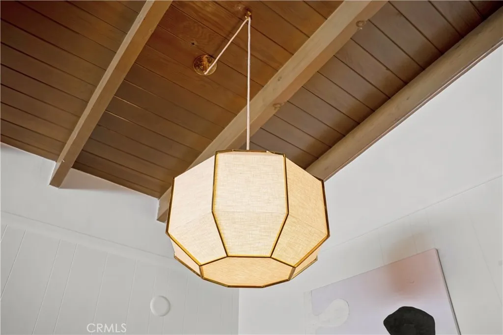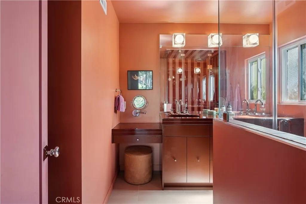 Introducing a vibrant single level mid-century modern pool home designed by renowned architect Charles Du Bois that has been curated to truly stand out from the crowd. Combining authentic materials, inspiring colors, and modern amenities, this one story stunner is bursting with character and intelligent functionality. The property is located on a sweeping corner lot with rolling front lawns, natural stone cladded exterior, and entry pathway flanked by towering Palms and a gorgeous full growth Magnolia tree. Step into a spacious entry foyer featuring a convenient guest powder bathroom, beautiful two-tone cork flooring, and walls adorned with a hand painted cloud motif. The entry opens to separate large living & family rooms each with tongue & groove wood beamed vaulted ceilings, redone double sided brick fireplaces, one with an original 60s brass cover, & two sets of glass sliders that open to the backyard for the perfect indoor/outdoor flow. The family room also features custom built-in storage cabinetry and a separate dining nook with wood product wall and one of many designer lighting fixtures found throughout. The just remodeled kitchen opens to the family room and boasts stainless appliances, soft close cabinetry, quartz counters, pantry storage, porcelain tile, original 60s pendant light, and breakfast nook. The primary bedroom overlooks the backyard and features closets with custom built-ins and a spectacular en-suite bathroom with dual sinks, custom glazed countertops created by Bali artisans, walk-in steam shower with rain shower head and striped tile design, bezel