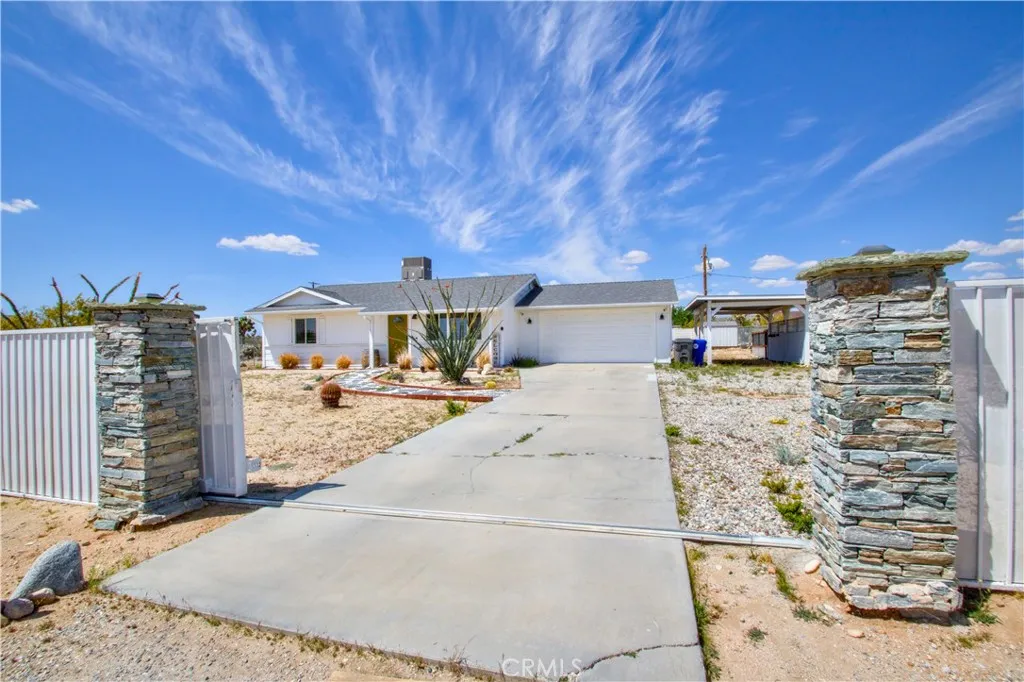 Charming 2-Bedroom Home on Expansive 20,000 Sq. Ft. Lot in Yucca Mesa! Discover this beautifully updated 2-bedroom, 1-bath home situated on a spacious nearly half-acre lot in the sought-after Yucca Mesa area! Boasting 1,008 sq. ft. of living space, this fully fenced property offers both privacy and charm. Step inside to a bright and open living area featuring stylish wood-look tile flooring throughout. The thoughtfully designed open-concept kitchen showcases quartz countertops, sleek cabinetry, a stove, microwave, and ample storage. Both bedrooms are generously sized with large closets, while a sliding glass door leads to a vast backyard, perfect for relaxing or entertaining. The outdoor space is an oasis for enjoyment, complete with a fire pit, horseshoe pit, seating areas, a chicken coop, and a storage shed. The property also includes an attached 2-car garage with direct access plus a carport for additional parking. Recent upgrades include a new septic tank, roof, water heater, and HVAC system (installed in 2020). Whether you're looking for a primary residence, investment property, or vacation home, this gem is a must-see!