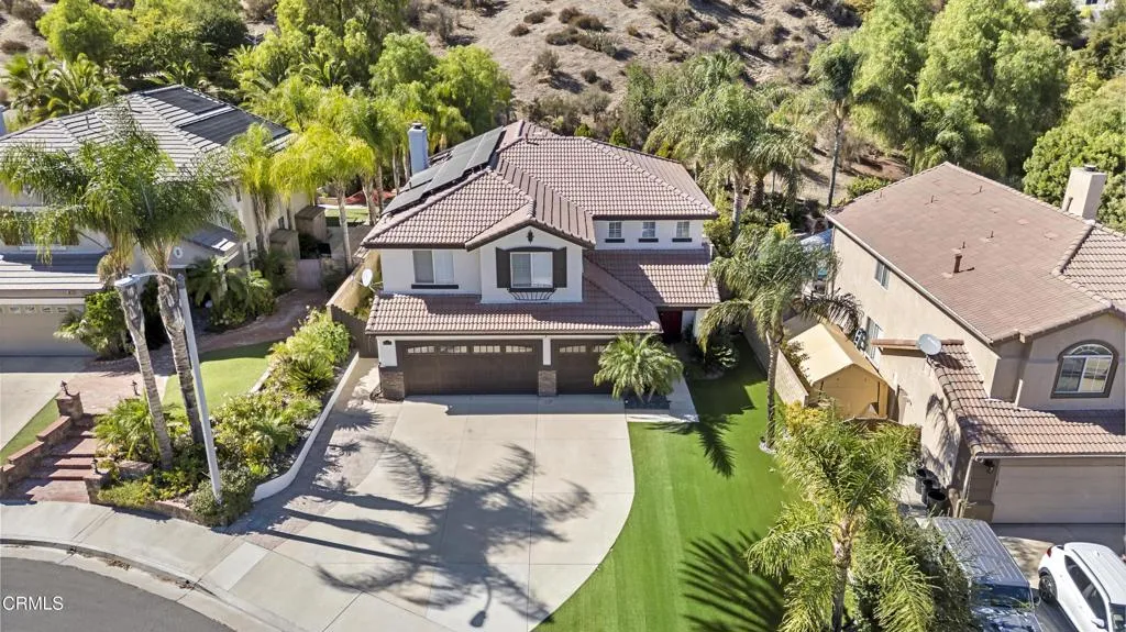Impeccable 4-bedroom + 3-bath pool home with nearly 3,000 sq. ft., including a downstairs bed/bath + office and a 3-car garage, perfectly situated on a quiet cul-de-sac with mountain views. Soaring ceilings greet you in the formal living and dining rooms, leading to a remodeled chef's kitchen with granite counters, custom cabinetry, and stainless appliances. The open layout flows into a cozy family room with fireplace and French doors that open to an entertainer's backyard.Upstairs features a spacious primary suite with serene mountain views, dual vanities, tub/shower combo, and walk-in closet, plus three additional bedrooms with walk-ins. Downstairs office/flex space offers versatility for a home office, gym, or guest room.Enjoy the ultimate California lifestyle in a private backyard oasis--complete with a sparkling pool and spa, built-in BBQ island, turf lawn, and ample space for gatherings. Perfectly designed for entertaining and everyday living.Additional highlights include solar panels, Ring Security Systems, newer HVAC, water heater, and an oversized driveway with plenty of parking.Located on an expansive 15,000+ sq. ft. lot minutes from Castaic Lake, award-winning schools, parks, and commuter routes. No HOA or Mello-Roos! A rare opportunity to own a move-in ready home that beautifully blends comfort, function, and modern upgrades in one of Castaic's most sought-after neighborhoods.