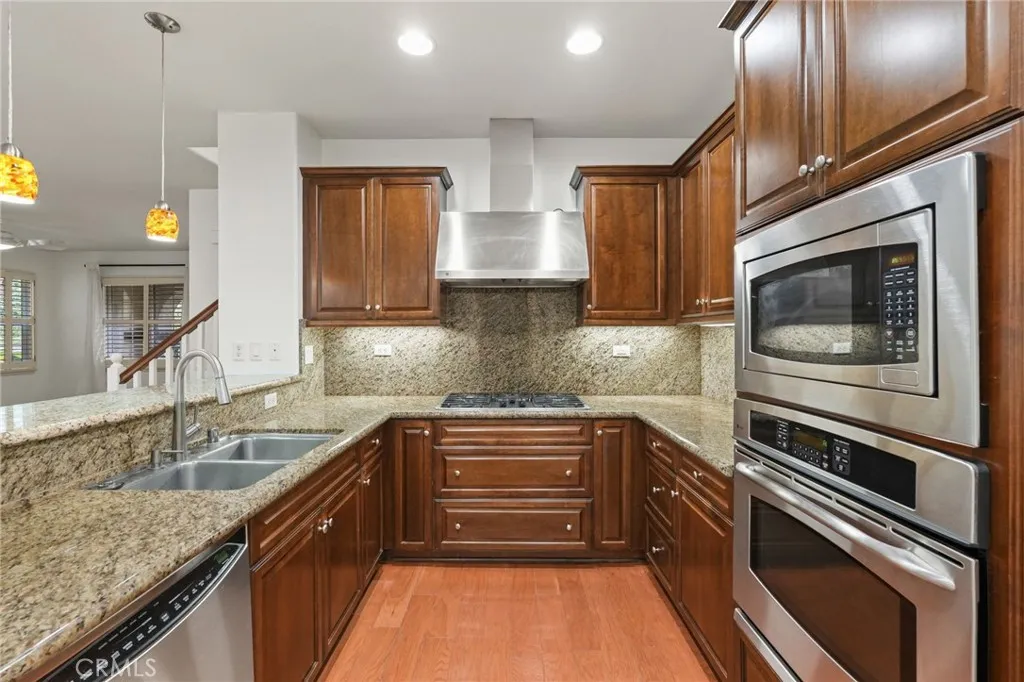 Welcome to this stunning 3-bedroom, 3-bathroom + LARGE LOFT condo, in the highly sought-after and GATED Northwood Estates community, perfectly positioned on a premium park-front lot. This corner-unit home offers TWO PRIMARY ENSUITE BEDROOMS (one downstairs and one upstairs) Downstairs includes a primary bedroom plus an additional bedroom and laundry room, making it ideal for multigenerational living. The open layout flows effortlessly, with a spacious living room featuring a cozy fireplace, hardwood floors, and fresh paint throughout. The kitchen boasts wood cabinetry, granite countertops, a built-in range, and stainless steel appliances, opening to a dining area. French doors lead to the wraparound patio, perfect for indoor-outdoor entertaining and relaxing under trees. Upstairs, the second primary suite offers comfort and privacy, accompanied by a spacious loft with a built-in desk and deck access with serene park views, ideal for a work-from-home space. Located within the highly acclaimed Irvine School District and just steps from the community park, clubhouse, and resort-style pool, this home offers 24-hour gated securitymaking it a rare opportunity that combines luxury, privacy, and an unbeatable location.