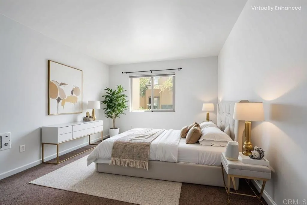 Welcome to this beautiful condo in the gated Villa Bonita community! This spacious 1-bedroom, 1-bathroom main-floor unit is move-in ready, freshly painted, and filled with abundant natural light. Enjoy an open, inviting floor plan with a generous living area that flows seamlessly into the kitchen and dining spaces, perfect for relaxing or entertaining. Features include a cozy wood-burning fireplace, private patio with storage, tile flooring, spacious bedroom and walk-in closet. The kitchen offers granite countertops, stainless steel appliances, and classy cabinetry. Convenient in-unit laundry with a new washer and dryer adds extra comfort. Resort-style amenities include a sparkling pool and spa, tennis court, BBQ and picnic areas, and pet-friendly green spaces. Assigned parking plus ample street parking available. Prime location near shopping, dining, and easy freeway access. Perfect for VA buyers, first-time homeowners, empty nesters, students, or investors looking for a turn-key home or rental opportunity. VA-approved complex ready to move in and enjoy! HOA includes Water and Trash.