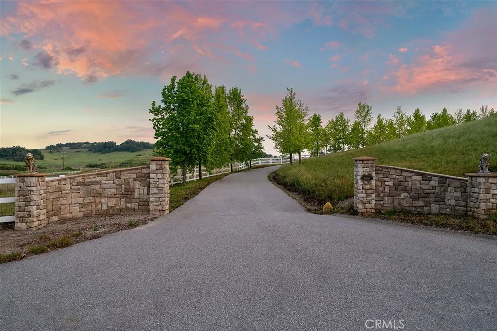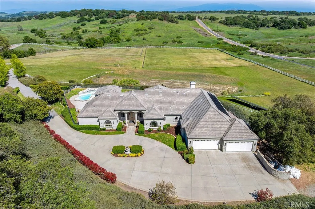 VERY PRIVATE 15.7-ACRE ESTATE ON 2 PARCELS!!! ONCE-IN-A-LIFETIME OPPORTUNITY TO LIVE SURROUNDED BY THE NATURE CONSERVANCY IN TENAJA ON THE SANTA ROSA PLATEAU! The grounds consist of 2 fully fenced & cross-fenced parcels at the end of a gated cul de sac with an abundance of usable land for horses/livestock, a large pad with foundation for a 16-stall breezeway barn, direct trail access, plenty of room for another large home, 2 ADUs, arenas, your own majestic ancient oak forest around the house, stunning views of the Santa Rosa Plateau Ecological Reserve and a feeling that you are in the middle of a natural wonderland, while being only 10 minutes drive to the conveniences of town. This is a rare combination of usable acreage PLUS a renovated, pristine, mostly single-story 4867 sf luxury estate with all bedrooms downstairs, 5-car garage, paid-for 44-panel ground-mount solar, high-efficiency heat pumps, solar-thermal heated pool, an Eagles Nest 2nd-story office with balcony and iconic views. The entire home has been meticulously renovated with the latest on-trend, high-quality appointments, including custom engineered hardwood floors, 2ft x 4ft flooring tiles, quartz counters, all-new cabinetry, appliances, HVAC, front door, designer plumbing fixtures, electric blinds, high ceilings, 8-ft interior doors, and open to the kitchen, a grand great room with media alcove & forever views. This view property is RARE, offering flexibility to build future structures, complete privacy, and is extremely convenient to freeway & amenities. It is surrounded by nature, has both mature trees & g
