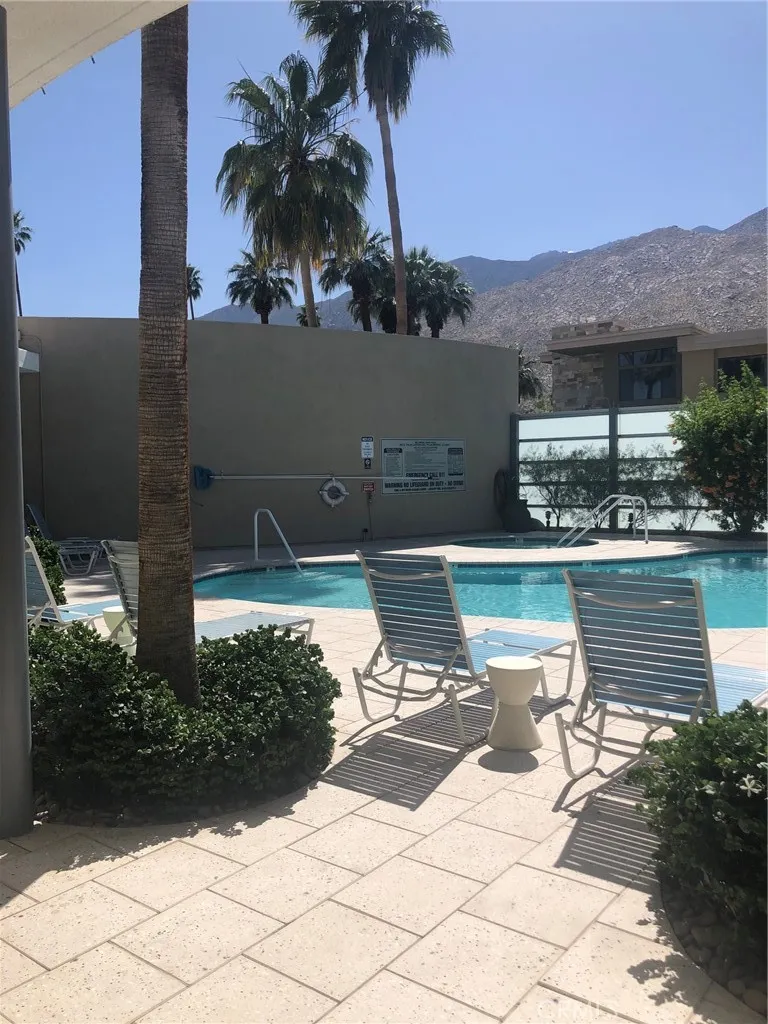 You will love this spacious BILTMORE home. Quiet in the center of the community, Mountain Views, custom cabinets, Newer microwave doubles as second oven. Stainless appliance kitchen, tile surround baths. Walk in closets. Balcony overlooking one of (3) three pools. Up-down blackout shades, large open living dining kitchen area for entertaining. Mini office in hall. Club house with full kitchen, cabanas, and misting system. All three pool areas have BBQ and tables, bathrooms and showers. This home has an attached direct access to car garage ( side by side not tandem) Near everything, casinos, bus to downtown or Palm desert. Supermarkets, restaurants and entertainment. If you are looking for a seasonal rental look no further this beautiful home commanded top fees In the past with repeat clients. Everyone loves the location and the home