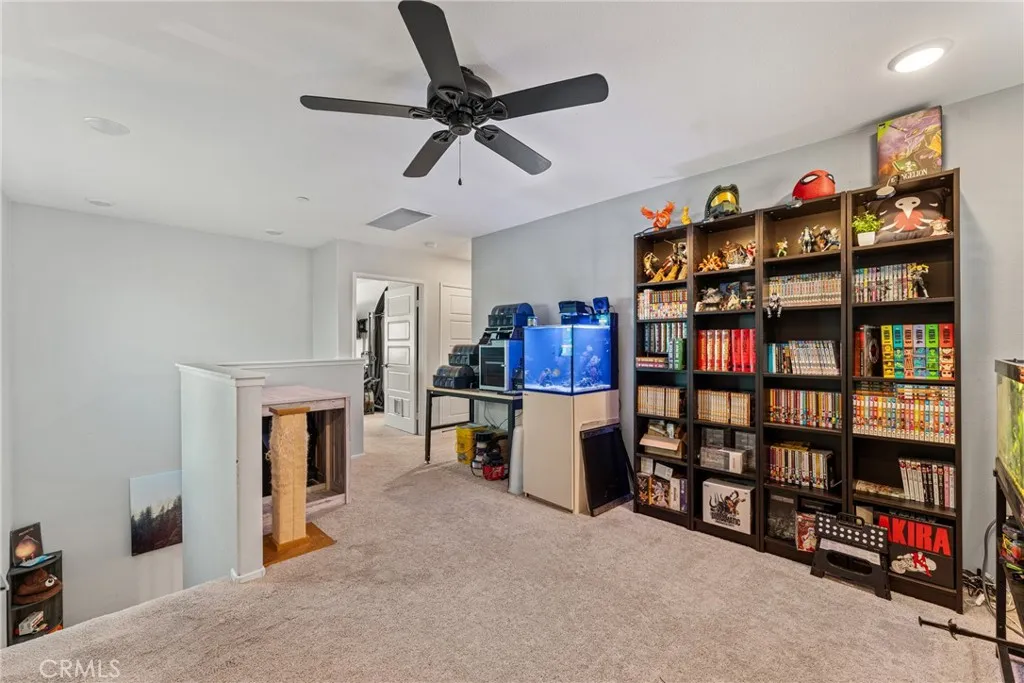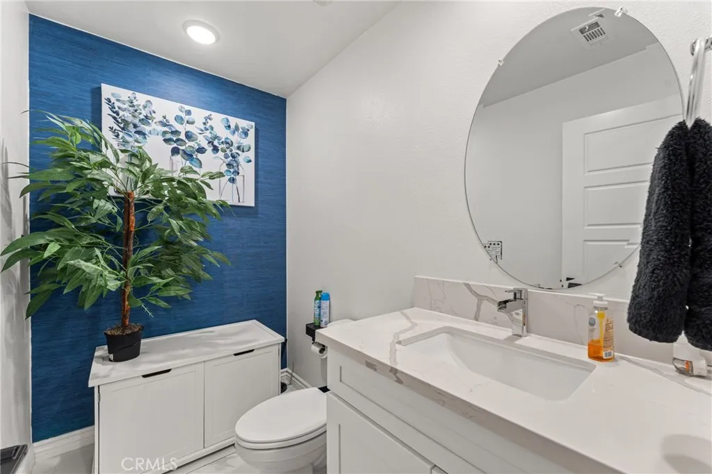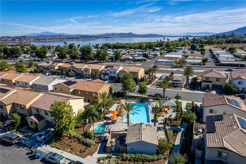 Welcome to your stunning modern home in the highly desirable West Lake community of Lake Elsinore. Enjoy the benefits of a low HOA in this 2020 built residence featuring stylish upgrades throughout. Step inside to find beautifully upgraded bathrooms and a spacious open concept kitchen complete with custom countertops and backsplash, upgraded stainless steel appliances, an overhead microwave, large pantry, and an island offering abundant storage and prep space. The open floor plan flows seamlessly into a large patio with an awning, perfect for entertaining or relaxing outdoors. The main level also includes a room currently used as an office that can easily function as a bedroom. Additional highlights include dual pane vinyl windows with shutters, a QuietCool whole house fan, smart thermostat, tankless water heater, ceiling fans throughout, and a Tesla charging station for added convenience. Upstairs, you will find a luxurious primary suite with a walk-in closet and ensuite bath featuring dual sinks, a soaking tub, and a separate shower. A spacious loft offers an additional living area, home office, or playroom. This home perfectly blends modern comfort, energy efficiency, and thoughtful design. Move in ready and beautifully maintained, it is ready for you to make it your own.