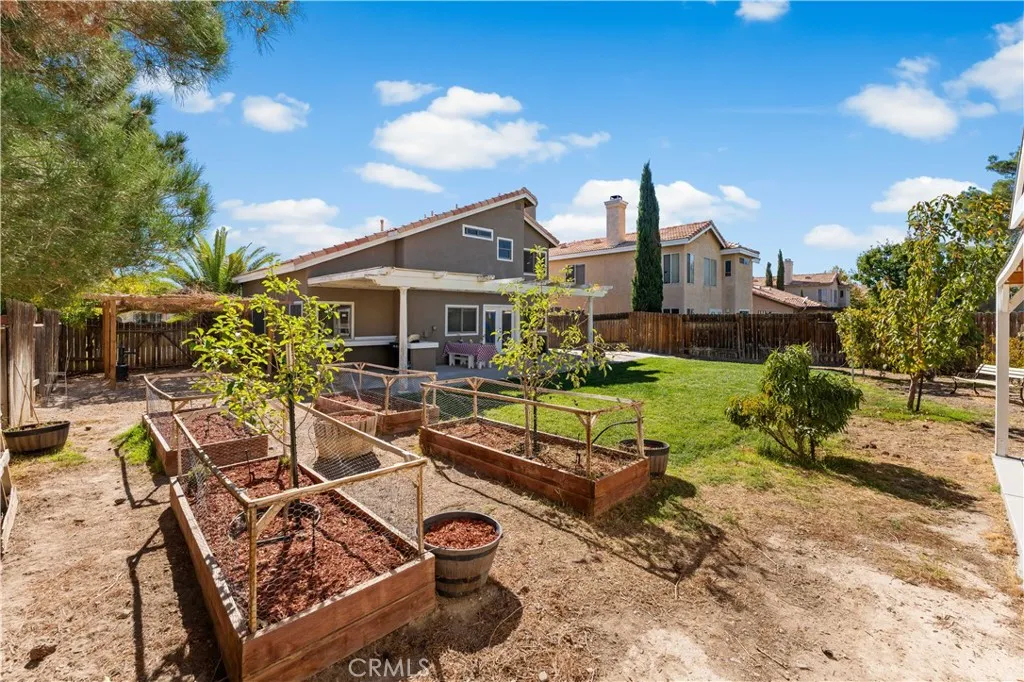 Desert Oasis - Featured in Homestead Living Magazine! Discover sustainable desert living at its finest in this charming 3-bedroom, 2.5-bath retreat showcased in the Spring 2025 edition of Homestead Living Magazine. This one-of-a-kind property features a delightful orchard with apple, cherry, peach, apricot, and nectarine trees, along with grapevines and four irrigated raised garden beds ready for planting. Modern upgrades include new double-pane windows and a new furnace, ensuring year-round comfort. The 120 sq. ft. powered workshop with loft, paved and covered work area, and garden shed provide exceptional flexibility for hobbies or projects. A chicken coop with water and electricity, 550-gallon water tank with pump, outdoor kitchen, and cozy fire pit make this home a true self-sufficient haven. Ideally located near Desert Christian High School, Antelope Valley College, and AV Medical Center, this lush, peaceful property blends creativity, comfort, and convenience into one serene homestead.