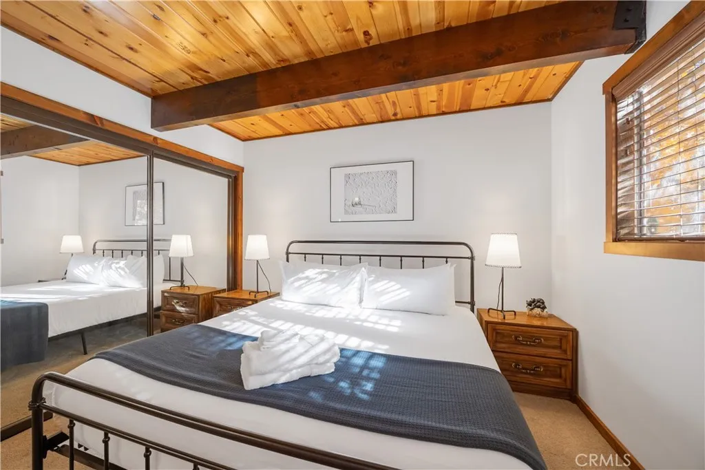 Nestled in the desirable Fox Farm area of Big Bear Lake, this charming mountain cabin offers a perfect blend of rustic ambience and modern convenience. Newly remodeled 4 bedroom with exposed beam ceilings and a cozy wood-stove hearth, the interior evokes classic alpine lodge comfort. Located on a great 8000 Sq Ft, corner lot, adorned with mature pines. Located just minutes from the slopes of Bear Mountain Resort, the lake and the village, its equally suited for year-round retreats or rental potential in a high-amenity mountain community
