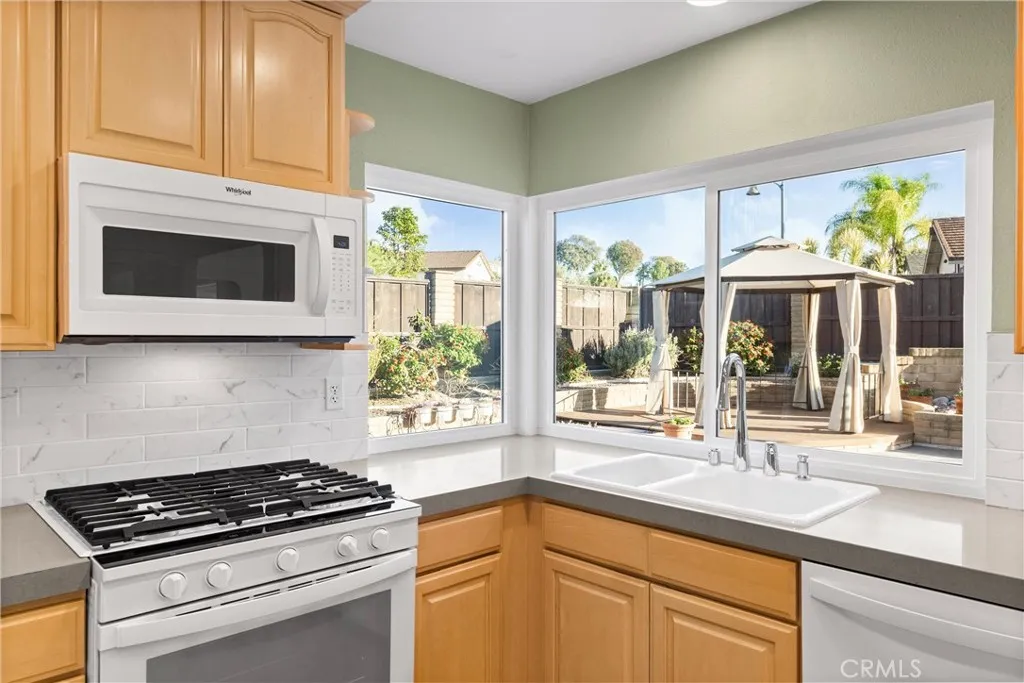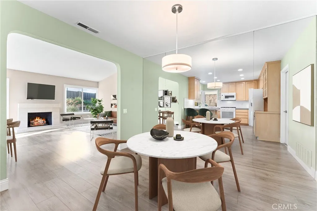 Charming Single-Story in Desirable El Dorado Neighborhood! Beautifully maintained and full of character, this Mission Viejo gem offers exceptional curb appeal with drought-tolerant landscaping and an expansive stone-paved driveway. Inside, vaulted ceilings and large picture windows fill the living room with abundant natural light and showcase peaceful views of the landscaped backyard. Thoughtful upgrades include luxury wood-grain vinyl flooring, dual-pane energy-efficient windows, and a warm, inviting color palette. The updated kitchen boasts Quartz countertops, rich Maple cabinetry with a built-in China cabinet, subway tile backsplash, whirlpool appliances, and a spacious breakfast bar. Relax by the marble wood-burning fireplace, or unwind in the primary suite featuring direct access to the back patio. The secondary bedroom offers custom built-in library and a private half bath, ideal for guests or a home office. The whimsical backyard landscape was thoughtfully designed to attract hummingbirds and butterflies. Additional highlights include a two-car garage with attic storage, optional Lake Mission Viejo membership, and convenient access to shopping, dining, and freeways.
