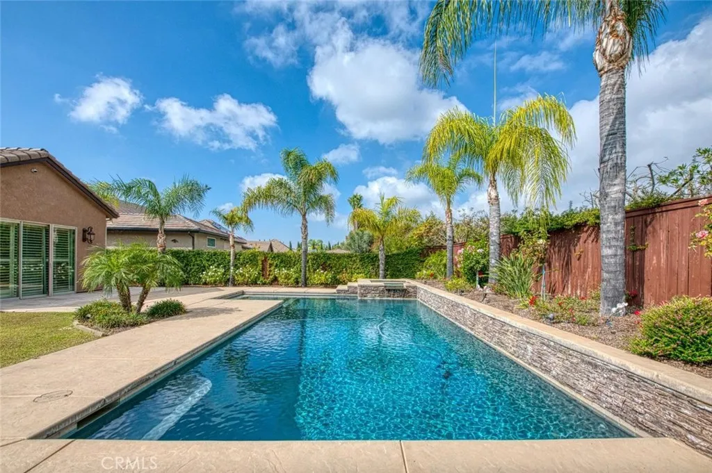 Set in the heart of Harlan Ranch, this Image-built residence marries timeless craftsmanship with contemporary comfort. Recently renovated, the home offers 5 bedrooms and 3 baths across approximately 3,759 square feet of beautifully balanced living space, each detail thoughtfully curated to invite light, ease, and elegance. A grand entryway opens into the living room, where high ceilings and expansive windows bathe the interiors in natural light. The seamless transition to the kitchen underscores the home's open-concept design, creating a space equally suited to quiet mornings or lively gatherings. Anchored by a striking Quartzite island, the kitchen showcases a professional-grade Wolf range, Sub-Zero refrigerator, and custom cabinetry designed with both form and function in mind. In addition to the generous living spaces, the home features a dedicated officeperfect for working from home or creative pursuitsand a versatile bonus room that can serve as anything from a home gym to a crafter's dream studio. Throughout the main level, tile and hardwood floors offer a sense of continuity and sophistication. The primary retreat redefines comfort, complete with a private fireplace, plantation shutters, and dual walk-in closets with custom built-ins. The en-suite bath evokes a spa-like tranquility, featuring new Quartzite counters, dual vanities, a jetted soaking tub, and a spacious two-person shower lined with fresh tile. Beyond the interior, the backyard unfolds as an entertainer's paradise: a lengthy covered patio overlooks a sparkling pool framed by mature landscaping and an ope