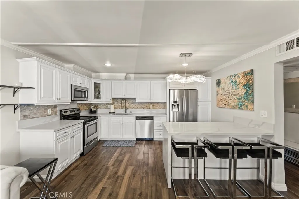 Welcome to this beautifully remodeled one-bedroom, one-bath condo in the heart of Sherman Oaks. Thoughtfully designed and move-in ready, this home offers comfort, convenience, and modern style. The light-filled interior features fresh paint, a modern kitchen with updated appliances, and an in-unit washer and dryer for effortless living. A private balcony provides a peaceful space to unwind, while the included TV adds a touch of ease and entertainment. Residents will appreciate the quiet, residential neighborhood, one dedicated garage parking space, and ample street parking for guests. Community amenities include a sparkling pool and beautifully maintained grounds, creating a serene setting just minutes from Ventura Boulevards popular shops, restaurants, and cafs.