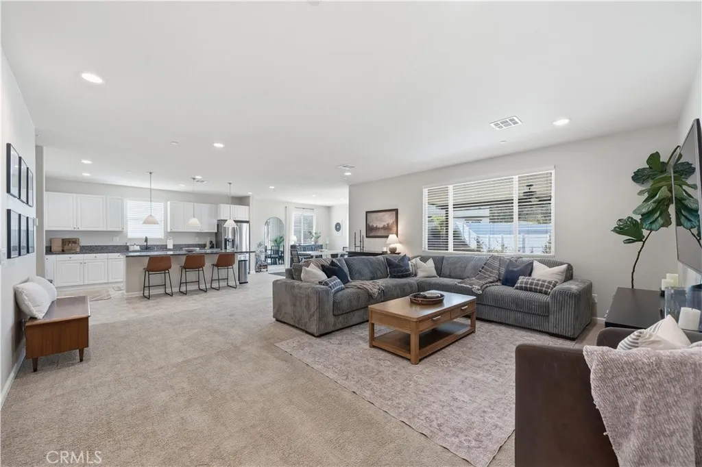 Welcome to this stunning single-story 4-bedroom, 2-bath home with PAID off solar! Offering 2,328 sq. ft. of modern living on a massive 12,632 sq. ft. lot with mountain views a rare find in Southern California! Built just one year ago, this home is like new and combines open-concept living with exceptional upgrades inside and out. As you walk through the front door you are greeted by an open floor plan featuring a spacious great room, neutral designer tones, and an effortless flow between living, dining, and kitchen spaces. The kitchen showcases granite countertops, a large island, stainless steel appliances, white shaker cabinetry, pendant lighting, a walk-in pantry, and an abundance of counter and storage space perfect for entertaining or family gatherings. The expansive primary suite offers a relaxing retreat, ample natural light, and a large walk in closet. The primary bathroom features a walk in shower, separate soaking tub, dual sinks, and crisp white cabinetry for a clean, spa-like feel. The three additional bedrooms provide flexibility for a growing family, guests, or a home office. The laundry room includes built-in cabinetry and a utility sink for added convenience. Enjoy Southern California living in the oversized backyard, offering endless possibilities theres plenty of space to build your dream pool or your imagination of an outdoor oasis. The 14 x 31.5 covered patio features dual ceiling fans, recessed lighting, and an electrical outlet, perfect for year-round entertaining. Take advantage of the shaded built-in playground, added irrigation with drip lines, a
