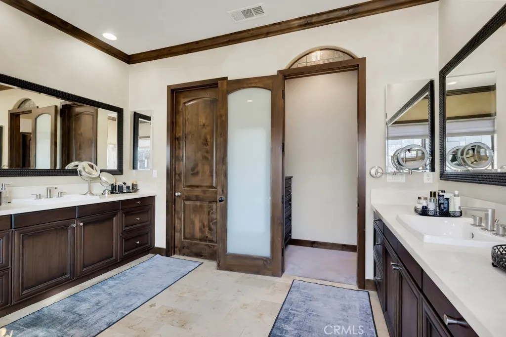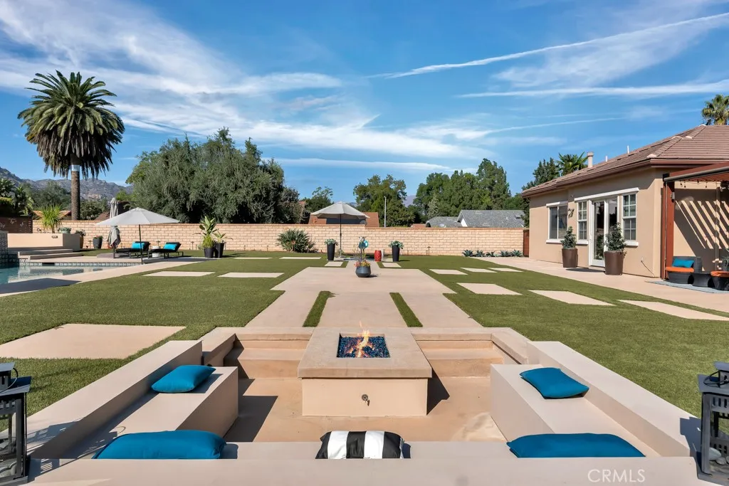 Welcome to this stunning Modern Tuscan single-story estate in the highly sought-after Rancho Paso Fino community of Chatsworth. Built in 2006 and once serving as one of the original model homes, this 5-bedroom, 3.5-bath residence offers 3,737 sq ft of designer living space on a nearly 20,000 sq ft lot. Every detail has been thoughtfully curated, blending timeless architecture with luxurious modern upgrades throughout. A private front courtyard with a cozy outdoor fireplace and lush landscaping creates a grand first impression, with potential for a beautiful water feature. Inside, a breathtaking grand foyer with soaring ceilings opens to the elegant family room with French doors to the courtyard and a formal dining room opposite the central hallway. The expansive living room features a gas fireplace and custom entertainment center, seamlessly connecting to the chefs kitchen complete with top-of-the-line Monogram appliances, granite countertops, a large center island with sink, and stunning backyard views from every window. Additional highlights include a generous walk-in pantry and a butlers pantry with a wine refrigerator and space for casual dining. The residential wing features three spacious guest bedroomsone with direct courtyard access, ideal for a home officetwo full bathrooms, and ample linen storage. The luxurious primary suite offers an electric fireplace, French doors to the backyard, a large walk-in closet, and a spa-inspired ensuite with dual vanities, a soaking tub, and a walk-in shower. A fifth bedroom near the entry provides flexibility as a guest suite, home