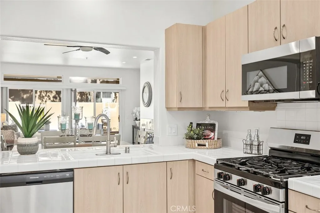 Resort-Style Patio Home/Condo in Mission Viejos Premier 55+ Community of Palmia. Discover the ultimate in active adult living in this beautifully updated single-story condo located in the sought-after guard-gated community of Palmia. Designed for comfort and ease, this no-steps home offers bright, open living spaces and stylish modern updates throughout.brand Step inside to find a freshly updated interior featuring designer paint, new lighting and fixtures, ceiling fans, and a brand-new HVAC system for year-round comfort. The open-concept great room is anchored by a cozy gas-burning fireplace and seamlessly flows into the dining area and open niche kitchen, complete with a brand new suite of stainless steel appliances. The spacious primary suite offers a peaceful retreat with a lighted ceiling fan, large walk-in closet, and a beautifully appointed primary bath featuring a walk-in shower, dual-sink vanity, and private toilet area. Both the primary suite and the living area open to a lovely patio yard, enhanced with newer landscaping and a sprinkler systemperfect for morning coffee or entertaining friends. A secondary bedroom with a large picture window and lighted ceiling fan, plus a separate full bathroom, provide comfort and flexibility for guests or a home office. Separate interior laundry room. Enjoy two attached single car garages, both with automatic doors. Property has been re-piped with PEX. Such a sage and gorgeous gated community... Enjoy all that Palmia has to offer, including resort-style amenities such as a clubhouse, pools, spa, fitness center, pickleball and t