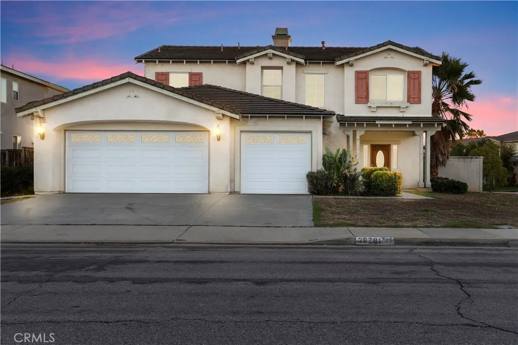 Prestigious Moreno Valley Ranch Home located just north of the Lake Perris recreational area. This 2,257 sq. ft. corner lot home features 4 bedrooms and 3 bathrooms. First floor includes 1 bathroom and laundry room. Located off the kitchen is a cozy family room with a gas fireplace and recessed media niche. The kitchen features black appliances, tile flooring and countertops, walk-in pantry, and plenty of cabinet space... Formal dining area and living room are located off the main entry. Upstairs features a loft that is centered between 4 bedrooms and a bathroom. Master bath includes dual sinks, a separate shower and large soaking tub that leads to a walk-in closet. Low tax base. Must see! Community is complete with pool, spa, gym, lake, clubhouse, paddle boats, basketball court, kid's playground, and more.