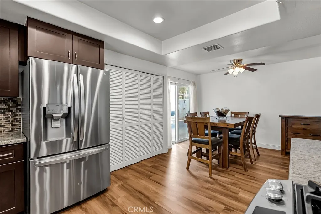 Discover the charm and elevated comfort where thoughtful updates meet scenic living. This single-story home sits above neighboring properties, offering a rare sense of privacy and a picturesque view from the family room, kitchen window, and backyard. Step inside to a warm, vaulted wood-beamed ceiling in the family room, anchored by a brick fireplace and direct access to a covered patio with dual ceiling fans, perfect for relaxing or entertaining. The formal dining or living room offers flexible space to suit your lifestyle, while the kitchen features granite counters, a custom-fit oven, and a side slider leading to the gated, paved RV area making loading and unloading a breeze. Recent upgrades include stylish new flooring and a remodeled guest bathroom enhancing the homes fresh and inviting feel. The primary bedroom also opens to the backyard through its own slider, creating a seamless indoor-outdoor connection. Additional highlights include plantation shutters, a laundry closet, outdoor electrical outlets for lighting and TVs, a storage shed, and a 2-car attached garage. With no HOA, low property taxes, and minimal special assessments, this home offers exceptional value. Leave the car behind and save gas! This home is ideally situated near a local park, Rileys Gym, Highland Elementary School, and favorite dining destinations, not to mention gas stations, and community churches conveniently nearby. Plus, with quick access to the freeway, commuting is a breeze. This is a rare opportunity to own a well-maintained home in the heart of Norco with character, comfort, and conveni