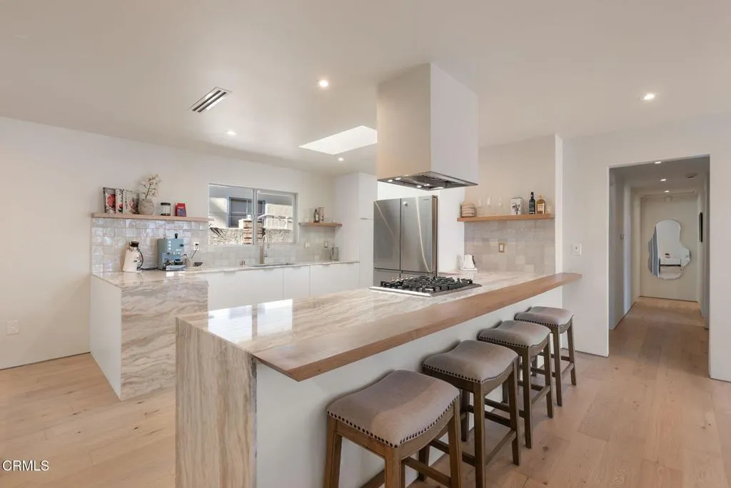 6919 La Presa is the kind of dream home that rarely becomes available. Set in a peaceful pocket of San Gabriel bordering San Marino, here you'll enjoy not just a gorgeous neighborhood but also San Marino school zoning. What's more, the current owners completed a total renovation in 2023. After taking the house down to the studs, they transformed 6919 La Presa into an effortlessly elegant modern sanctuary that feels luxurious, warm, and welcoming all at once. Engineered white oak floors and abundant natural light enliven the open-concept living room, dining area, and kitchen-the perfect environment for fostering a deep sense of connection with those you love most. Smart home features, like an integrated sound system, allow you to set the perfect mood with ease, whether relaxing or entertaining. The stunning kitchen showcases a quartz waterfall island and is outfitted with ample storage, stainless appliances, and a built-in wine fridge. Seamlessly blending functionality and contemporary style, you'll treasure this natural gathering place where cooking never feels like a chore. The nearby family room invites movie marathons and game day watch parties, and can easily be converted into a bedroom if desired. When it's time to unwind, three relaxing bedrooms provide everyone with their own retreat. The generously sized primary suite includes a walk-in closet and soothing rain shower. The second bedroom also includes a skylit ensuite while the third accesses a hallway bathroom. In the backyard, a private oasis is shaded beneath a large pergola, where Spanish terracotta tile and a s