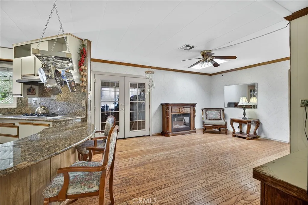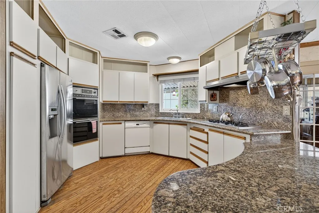 Welcome to 23820 Ironwood Ave #176, Moreno Valley a charming 2-bedroom, 2-bath home in the friendly 55+ Il Sorrento community! Step inside to find a bright, open layout with high ceilings, skylight, and beautiful wood floors. Enjoy the comfort of new bedroom flooring, updated plumbing, and a newly installed HVAC system. The home also features a spacious kitchen with marble counters, a cozy office area, laundry room, and plenty of storage with an outdoor shed. Relax on the large covered porch with ramp access (ramp belongs to the association), perfect for morning coffee or evening sunsets. The community offers year-round activities and gatherings, creating a warm and welcoming place to call home. Conveniently located near shopping, dining, and medical services this home offers comfort, convenience, and community all in one.