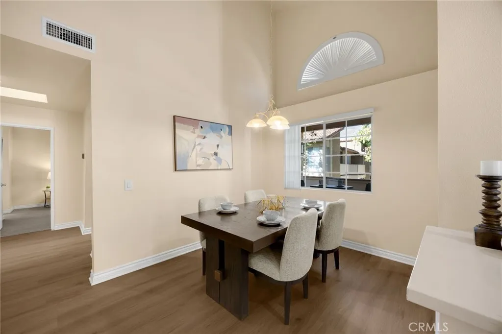 This beautifully updated upper-level 2 bedroom, 2 bathroom condo offers spacious living enhanced by soaring vaulted ceilings and a thoughtfully designed floor plan. The primary suite features an en-suite bathroom and a private sliding glass door that opens directly to the balcony, where a dedicated laundry and storage room provides added convenienceeliminating the need for off-site laundry. The second bedroom is generously sized and includes a walk-in closet. In February 2025, luxury vinyl plank flooring was installed throughout the main living areas, adding a modern and cohesive aesthetic. The kitchen is equipped with sleek stainless steel appliances, and the refrigerator is included with the home. It also opens to the balcony through sliding glass doors, ideal for outdoor dining, and is situated next to the formal dining room, which flows seamlessly into the living room complete with a cozy fireplace and additional patio access. A new HVAC system was installed in late 2023, ensuring year-round comfort. Community amenities include two pools, four spas, tennis courts, multiple playgrounds, and a clubhouse with a fitness center. The HOA covers roof maintenance, exterior termite control, water, and trash. Located within the highly acclaimed Placentia Linda Unified School District, this home is zoned for Bryant Ranch Elementary, Travis Ranch Middle School, and Yorba Linda High School. A rare opportunity to own in Yorba Linda for under $600,000this property is not expected to last!