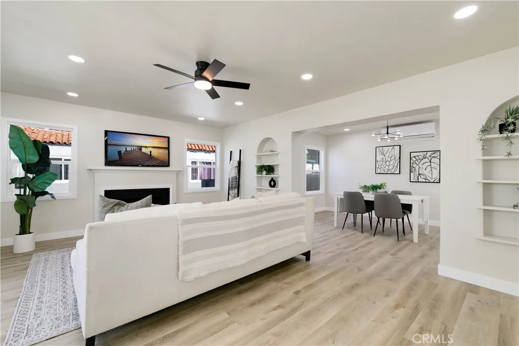 Enjoy modern living at its finest in this completely renovated turnkey home. Flooded with natural light, the open-concept layout highlights all-new dual-pane windows, designer lighting, and waterproof luxury vinyl plank flooring throughout. The spacious living room features a beautifully refinished brick fireplace, sleek ceiling fan, and oversized windows that fill the space with warmth and style. The brand-new kitchen is a showstopper with shaker cabinetry, marble-veined quartz counters, a matching full-height backsplash, matte black hardware, and a deep farmhouse-style sink. The bathroom feels like a boutique spa retreat with striking marble-look tile, a glass-enclosed shower, a soaking tub, and a modern vanity with matte black fixtures. The bedroom offers a serene escape with soft natural tones and a ductless mini-split system for year-round comfort. Major upgrades include a new electrical panel, new plumbing, and a new roof, providing peace of mind for years to come. Outside, the homes Spanish-style exterior with a red-tile roof and drought-tolerant landscaping blends timeless charm with modern ease. Every inch has been thoughtfully designed for comfort, efficiency, and style. It's truly a move-in-ready gem.