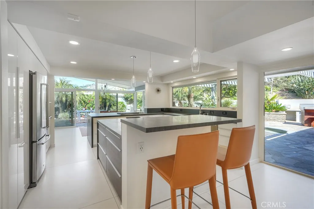 A SPECTACULAR & COMPLETELY RENOVATED MID-CENTURY MODERN LUXURY ESTATE W/DYNAMIC OCEAN VIEWS OFFERS SINGLE LEVEL LIVING & ULTIMATE PRIVACY ON A LARGE FLAT LOT WITH ROOM TO EXPAND. LOCATED IN COVETED MONARCH BAY TERRACE. BEYOND THE GATED ENTRY, FINDS A WORLD OF REFINED STYLE, W/AN ARTISTIC KOI-FILLED POND & ARTISTIC PRIVATE ENTRANCE SETTING THE TONE FOR THE ELEGANCE WITHIN. STEP INTO THE GRAND CUSTOM ENTRY & BE DRAWN INTO UNPARALLELED LIVING SPACE W/WALLS OF FLOOR TO CEILING WINDOWS, SHOWCASING VIEWS OF OCEAN, SUNSET, HILLSIDES & CITY LIGHT VIEWS. WITH ULTIMATE PRIVACY & EXQUISITE ATTENTION TO DETAIL, THE HOME WILL PLEASE EVEN THE MOST DISCERNING BUYER. PRISTINE NEOLITH SURFACE FLOORING THRU-OUT ADDS ARTFUL CONTRAST W/REDWOOD STATEMENT WALLS. THE EXPANSIVE LIVING & DINING ROOM ARE GRACED W/A STUNNING EXPANSIVE FIREPLACE. THE RESORT-INSPIRED REAR YARD SHOWCASES A PEBBLE-TEC POOL W/CASCADING WATERFALL, STUNNING STACKED-STONE BACKDROP & A LUXURIOUS BBQ ISLAND W/SEATING FOR GUESTS. A FULLY REDESIGNED CHEFS KITCHEN OFFERS DRAMATIC STONE COUNTERS*CUSTOM MADE CABINETRY W/ PULL-OUT SOFT CLOSE MAPLE DRAWERS*UNDER-COUNTER-DRAFT FOR 5 BURNER RANGE, EXCEPTIONAL CENTER ISLAND & HILLS & VIEWS! THE EXCEPTIONAL PRIMARY SUITE PROVIDES AN INCREDIBLE LUXURIOUS ENSUITE BATH W/STONE-LINED SHOWER & A CUSTOM WALK-IN WARDROBE W/GLASS ENCLOSED ORGANIZERS & SOFT-CLOSE DRAWERS, A TRUE DREAM WARDROBE! A SECONDARY BEDROOM HAS NEW WALK-IN WARDROBE W/AMAZING CUSTOM ORGANIZERS WHICH WILL PLEASE THE MOST DISCERNING OF BUYERS. THE REDESIGNED LAUNDRY HAS AMAZING STORAGE SPACE & ADDED SQ.FT, CREATING A PERFECT