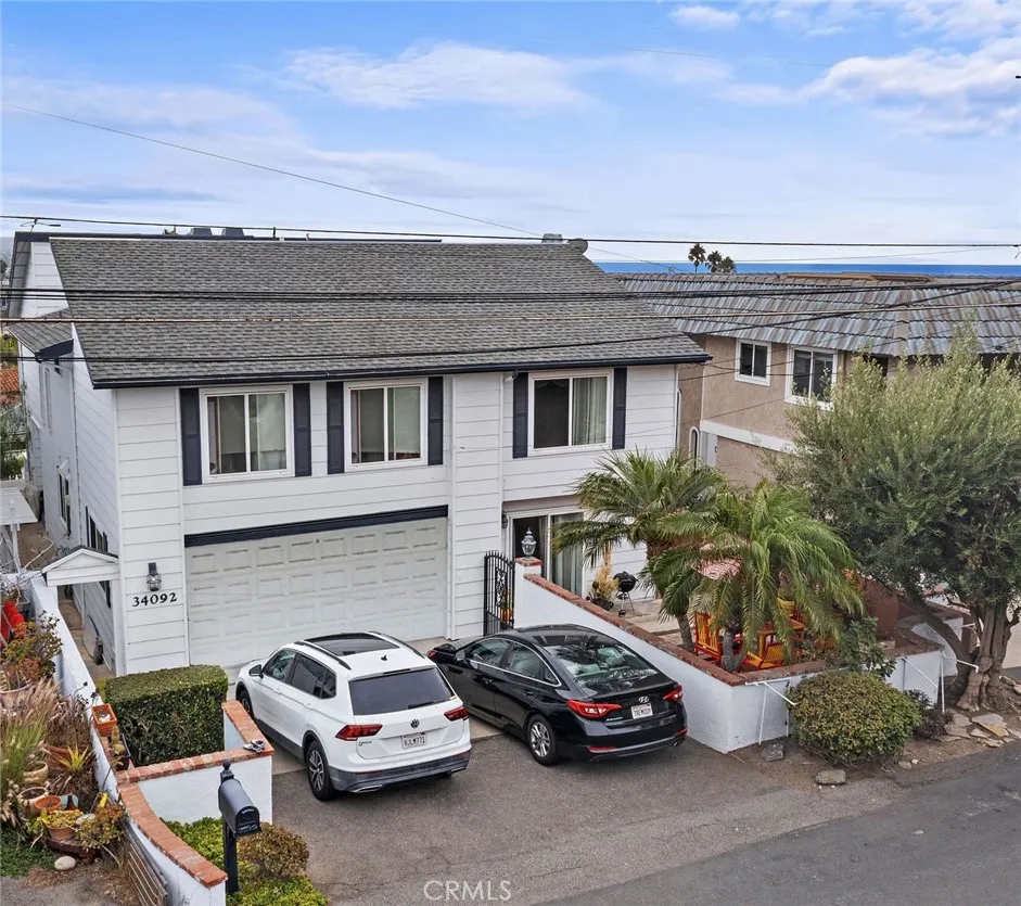 Perched above the coast in Dana Point, this well-maintained duplex captures sweeping panoramic ocean views from both levels and offers an exceptional location just moments from the vibrant Lantern District, Strands Beach, and the scenic Dana Point Headlands trails. The property consists of two spacious residences, with opposing street entranceseach with generous parking and thoughtfully designed layouts. The upper unit at 34092 Seville features direct access to a two-car garage along with two additional driveway spaces, while the lower unit at 34091 Ruby Lantern includes its own two-car garage (non-direct access) plus two driveway spaces. An additional single-car garage is currently leased separately. This rare coastal investment opportunity blends walkability, ocean views, and convenience in one of Dana Points most desirable neighborhoods.