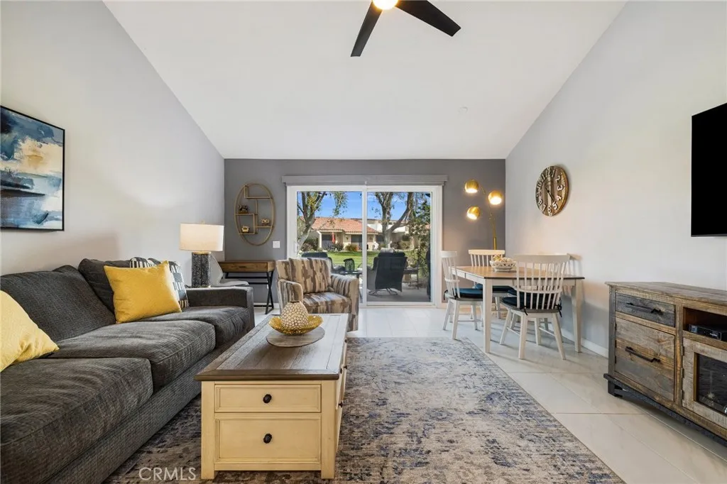 Welcome to 77386 Preston Trail, a beautifully remodeled 2 bed, 1 bath end unit, perfectly situated on a large green space with plenty of privacy and views of the palm tree skyline. Palm Desert Resort Country Club (PDR) is home of the largest pickleball club in the valley. This turnkey property has been remodeled floor to ceiling with upgrades to include: open concept kitchen, remodeled kitchen and bath, new closet doors, extended patio, newer appliances, washer & dryer and more. No expenses were spared on this charming condo. It's ready for a full time resident or to turn over as a seasonal rental property. It's fully stocked with all of the necessities needed to move in and call it home. The resort amenities are sure to make you feel like you're on vacation all year round. With 20 pools & spas, a champion golf course, 30 pickleball courts, 7 tennis courts, cafe, clubhouse, bocce ball & pro-shop, you're set to enjoy the resort lifestyle in PDR. Short term rentals are permitted. It's close to El Paseo, The Tennis Gardens, Coachella concerts, polo fields, Acrisure Arena and all of life's conveniences.