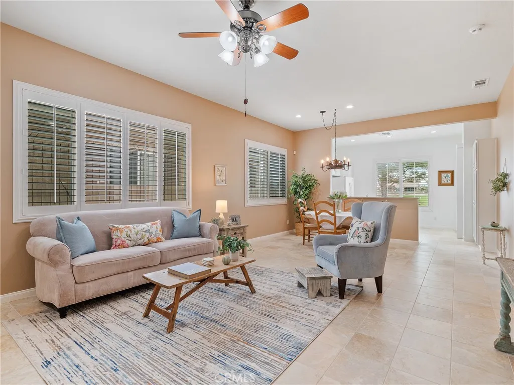 BEAUTIFUL and BRGHT.........Look at this Fabulous GOLF COURSE HOME in Sun CITY. Open Floor Plan, Bar area and Eat In Kitchen. This Home features 2-Bedrooms and 2-Full Baths, Plus a Bonus Den/Office and a Large Living Room and Dining Room. There are Plantation Shutters, Tile Floors, High Ceilings and a Fantastic Covered Patio with Outdoor living area and stunning views on the Golf Course. Landscaped Front and Back Yards. Relax and Enjoy all that the Del Webb 55+ Gated Community has to offer. Unwind and Enjoy Living in this Home!