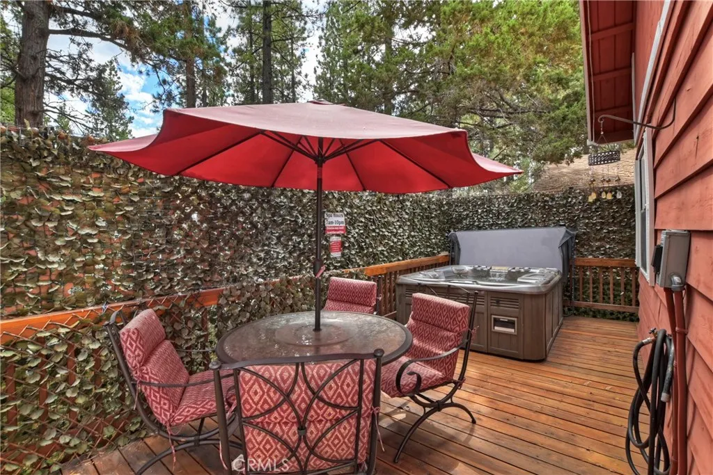 SOLAR, ON GRID ELECTRIC AND WHOLE HOUSE GENERATOR. Step into this energy efficient, family friendly 4-bedroom 3 bath 2737 sq. ft. home. Featuring owned SOLAR and also on the grid of Bear Valley Electric AND a backup whole house generator. Never be without power again! Don't let the age fool you, original house was 500 sq ft there was a 2200 sq ft addition added in 2003. Master suite on main level with huge walk-in closet. You will enjoy instant hot water with the tankless water heater. Open floor plan with 2 living rooms, vaulted T&G ceilings, hardwood floors and a cozy fireplace. Beautiful fountain in front yard as you sit on the front porch and enjoy the peacefulness of the area. Go to the back yard for a hot bubbling jacuzzi waiting for you surrounded with patio furniture, bbq and an outdoor bar! Storage shed and fenced yard for added security and safety. Parking for 4 cars. Only a block away from the zoo and Moonridge Village shops and less than a mile from Bear Mountain Ski Resort. Free shuttle to the ski resort is only a block away.